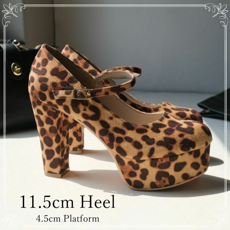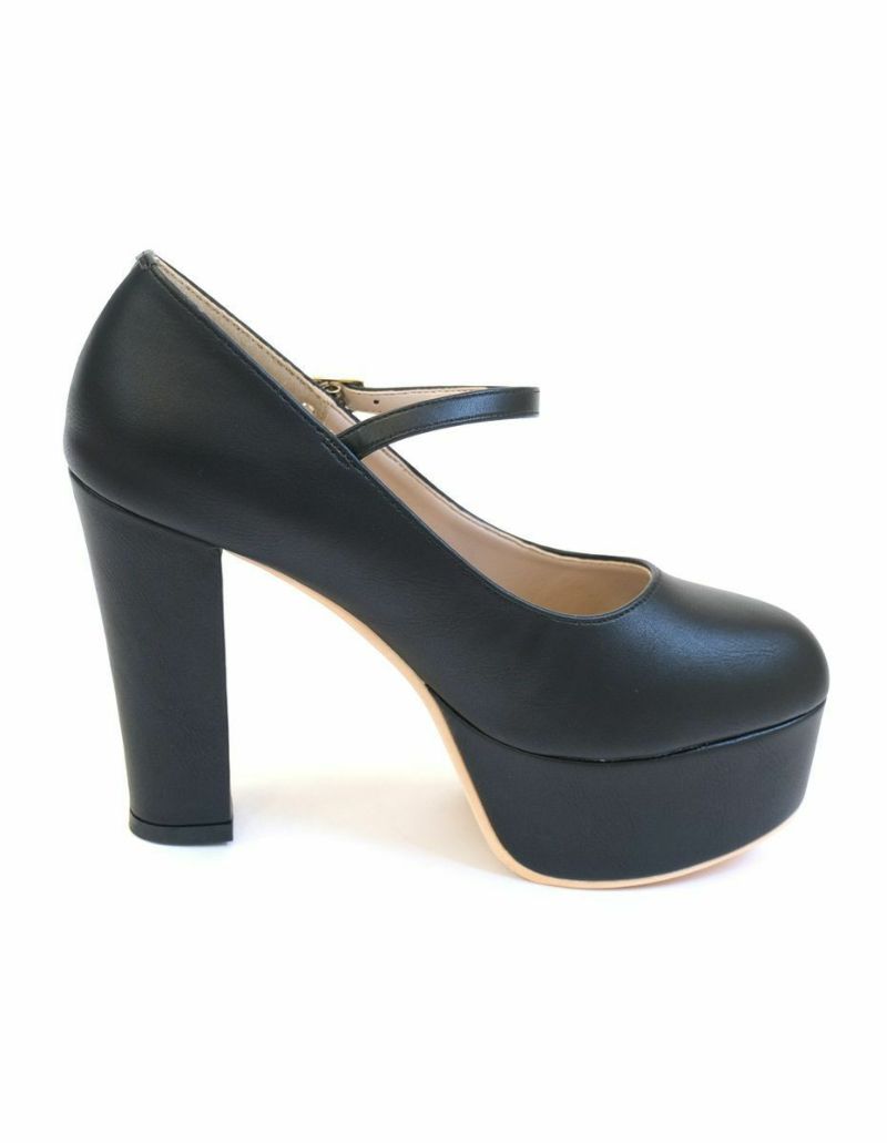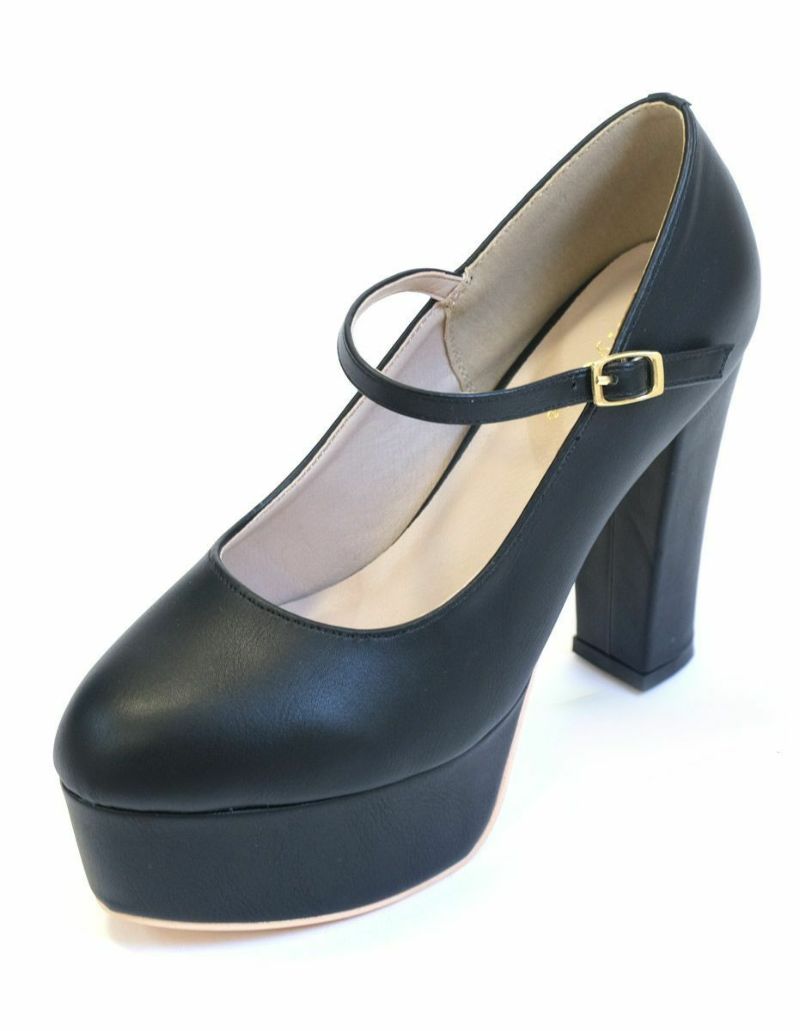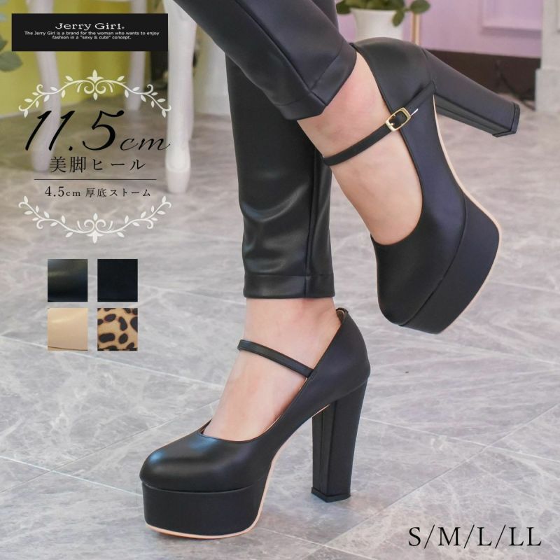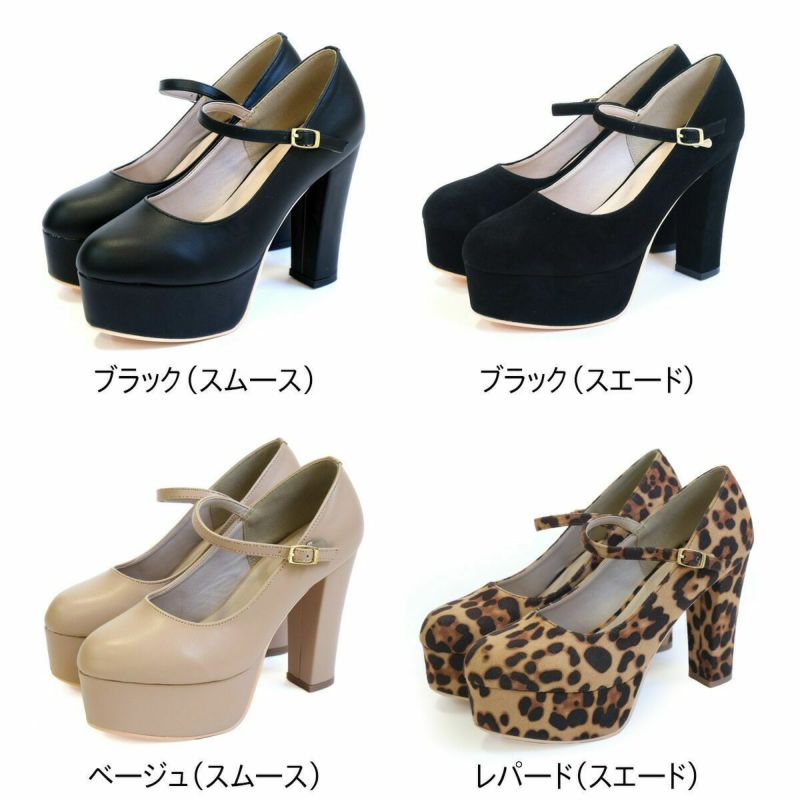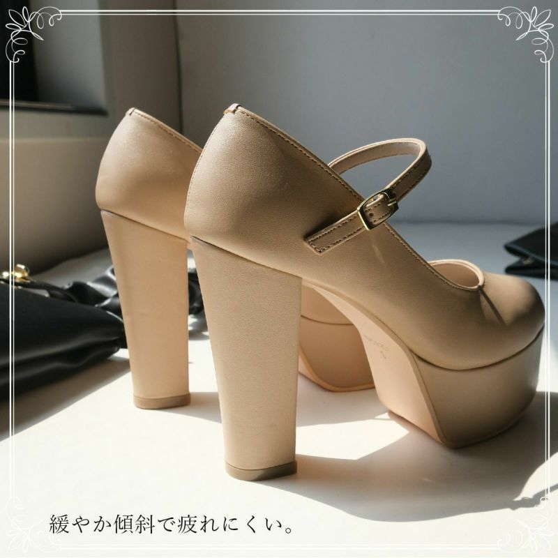 ストラップ付プラットフォーム太ヒールパンプス レディース