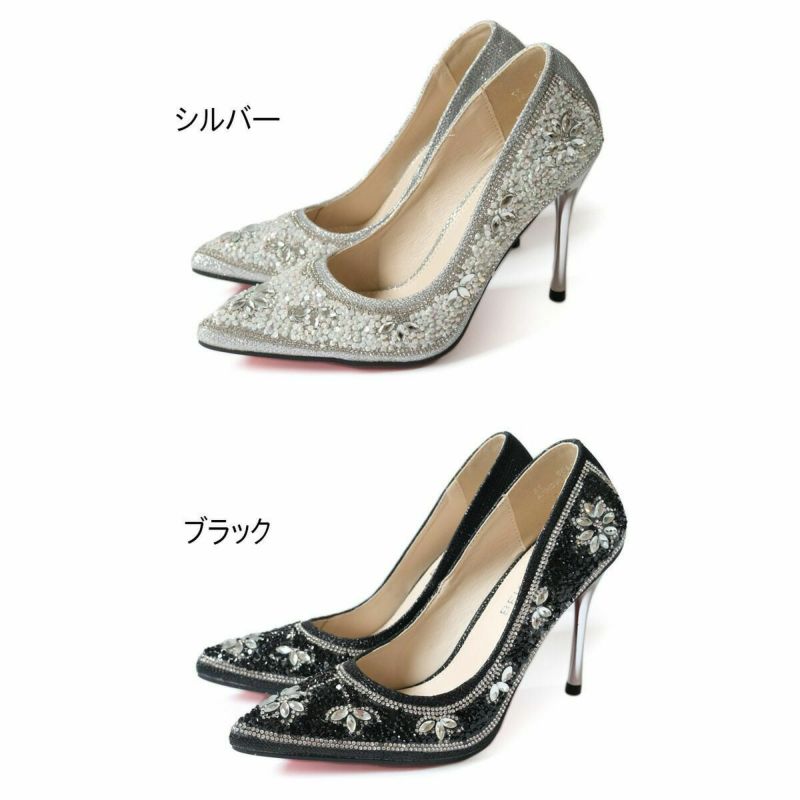 スッと細く伸びたヒールで後ろ姿も美脚度高め輝くビジューで360度美しい足元を演出!