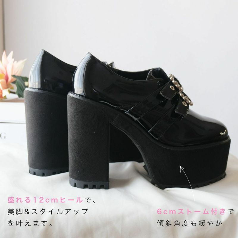 ボリュームヒールで美脚&スタイルアップを叶えます。甘めから病み系まで、幅広いスタイルに合わせていただける一足。
