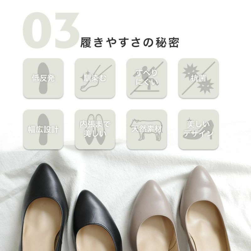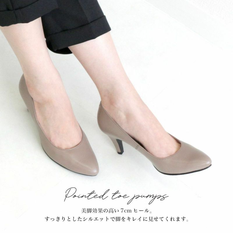 ベーシックなデザインながらシルエットが美しいポインテッドトゥ。こだわりぬいたシルエットと美脚効果の高い7cmヒールで、美しい脚へ導いてくれます。