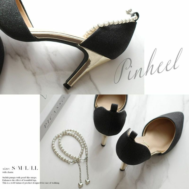 パール調のアンクルストラップを用いた華やかでお洒落なパンプス
