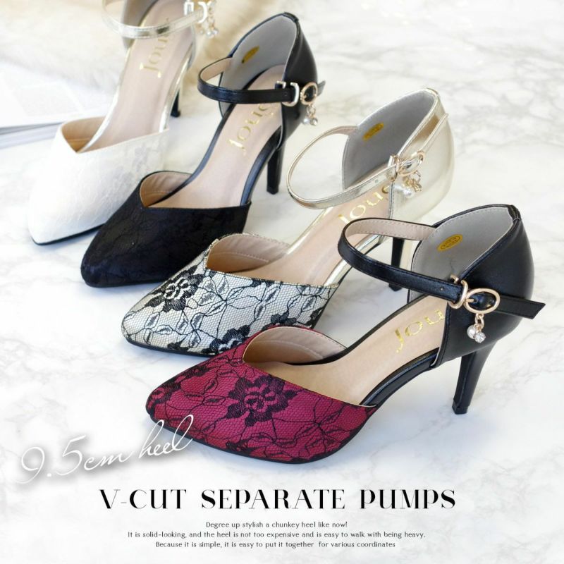 アンクルストラップで脱げにくく、セパレートデザインが程よい抜け感をプラスしてくれます。インソールは疲れを和らげてくれるクッション入りで、9.5cmのハイヒールながらも安心感のある履き心地。