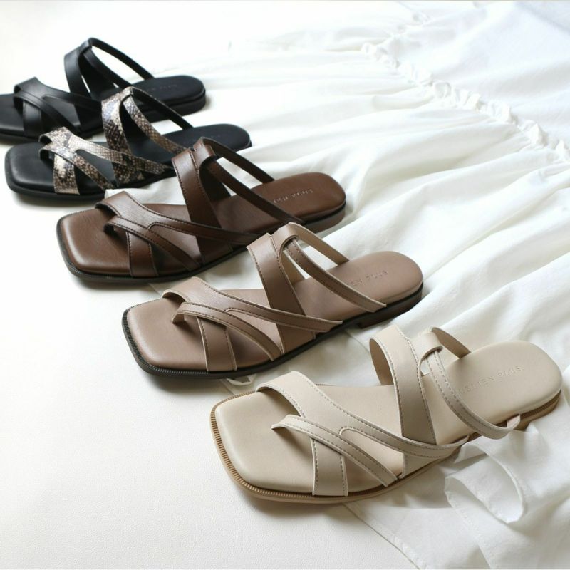【返品交換不可】【在庫限り!特別価格!】スクエアトゥメニーストラップサンダル レディース