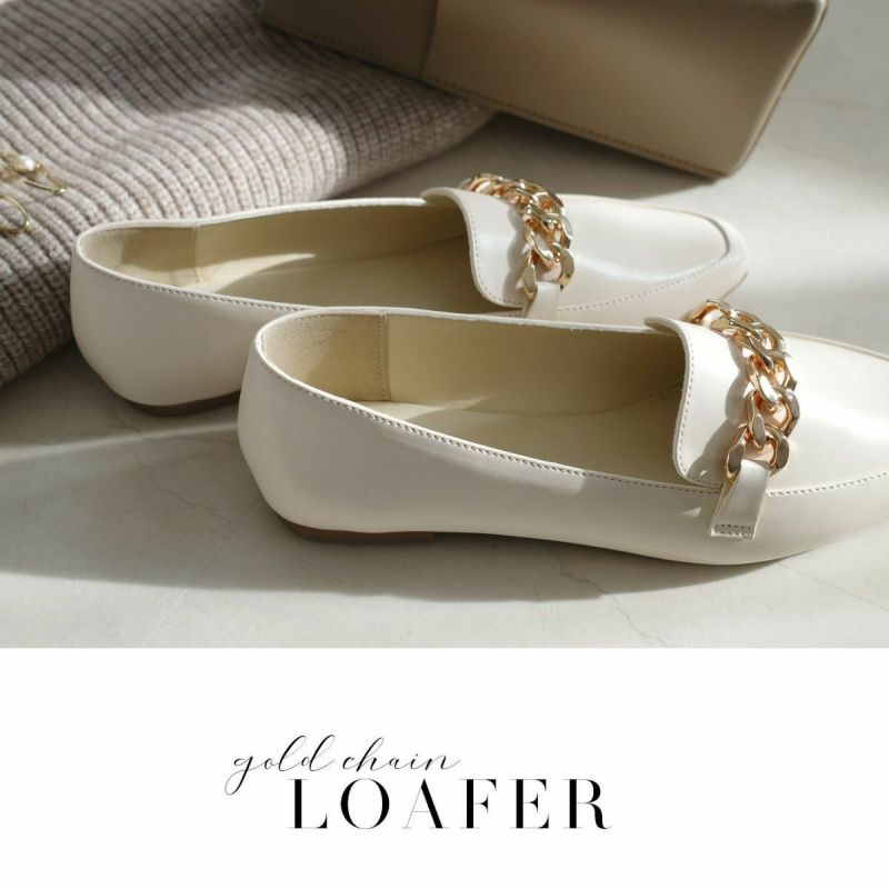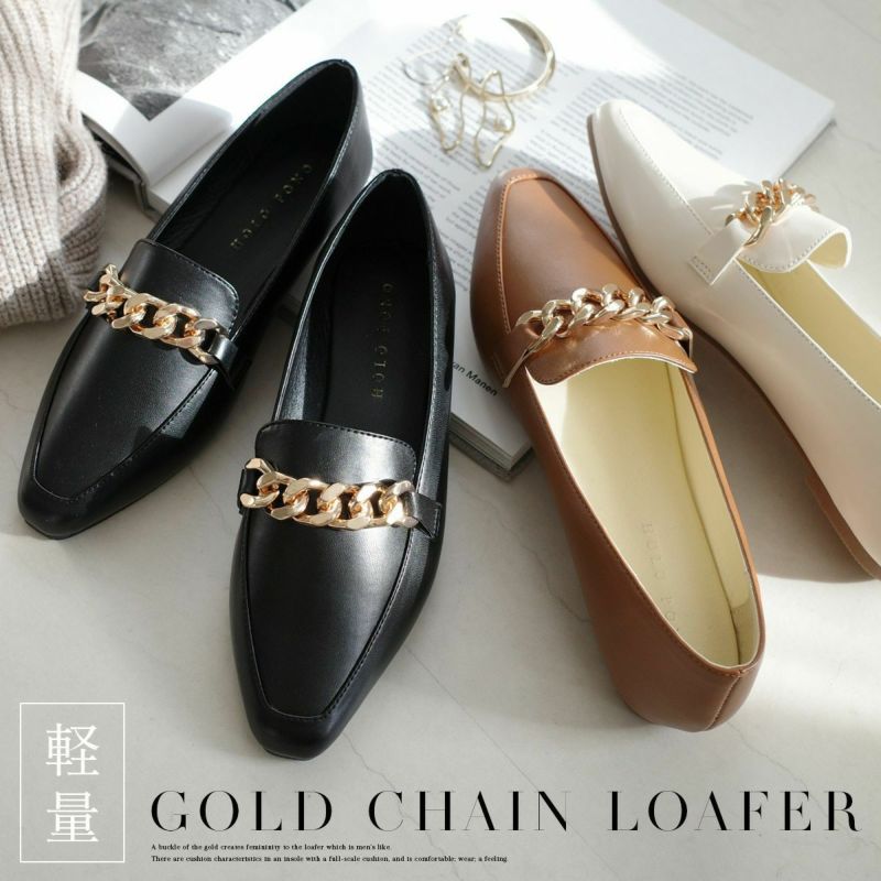 【在庫限り!特別価格!】軽量ゴールドチェーンローファー靴 レディース