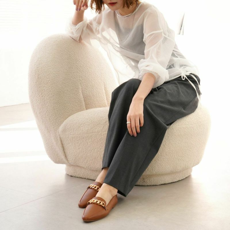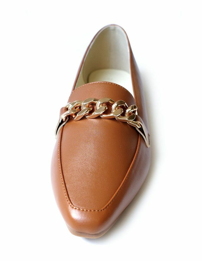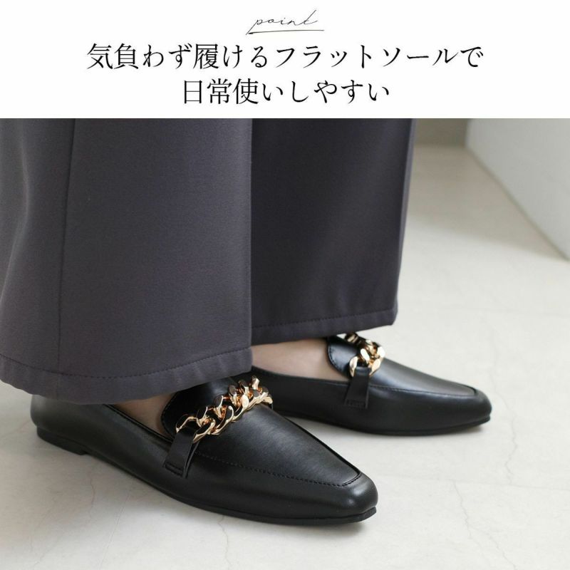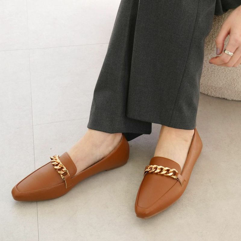 足元の表情が煌めき華やぐ、ゴールドチェーンローファー