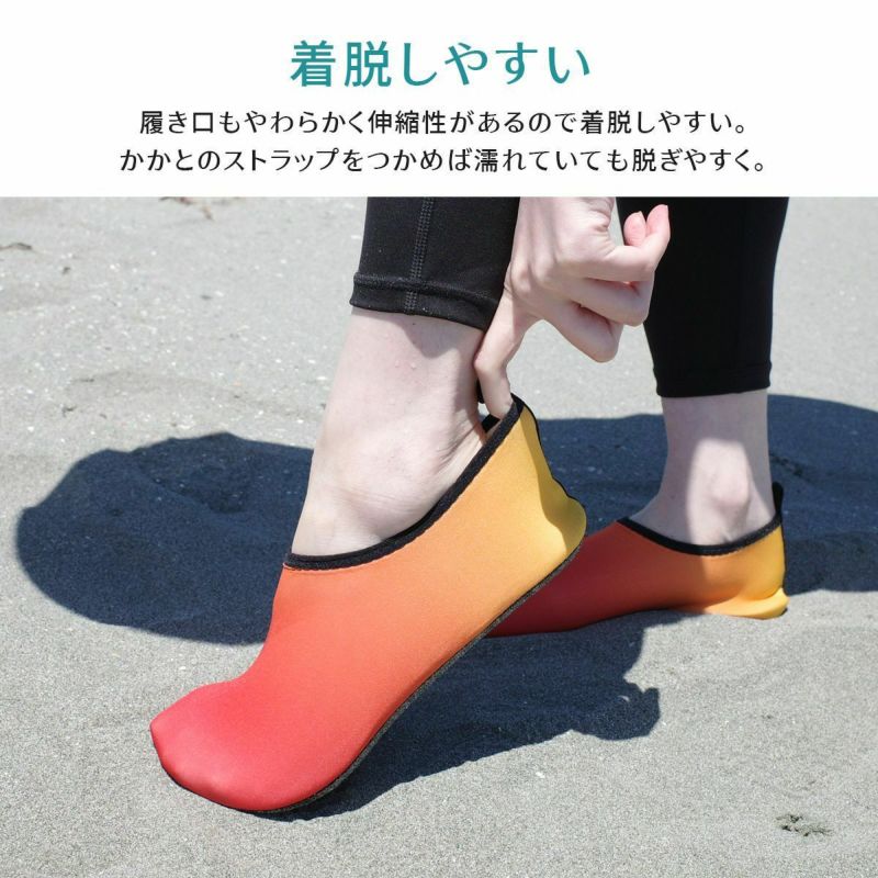 柔軟な素材でたくさん動いても足にぴったりフィット!歩きやすいうえ、水中でも脱げにくい◎凸凹が施された底面で滑りにくく、岩場など滑りやすい場所でも安心。履くだけで足の安全対策に。
