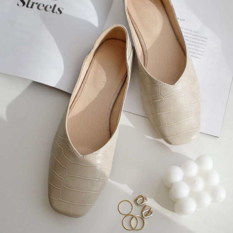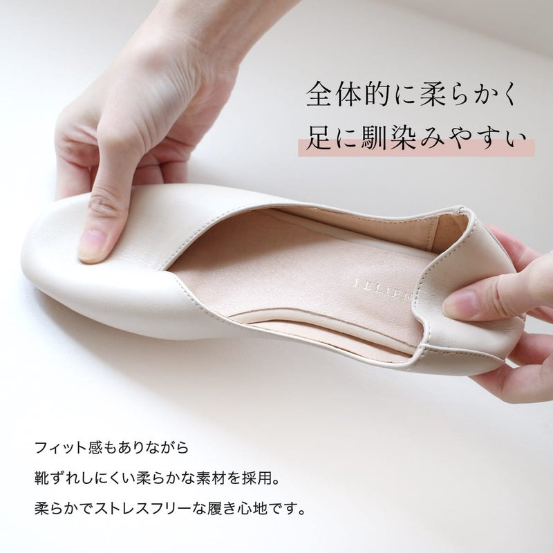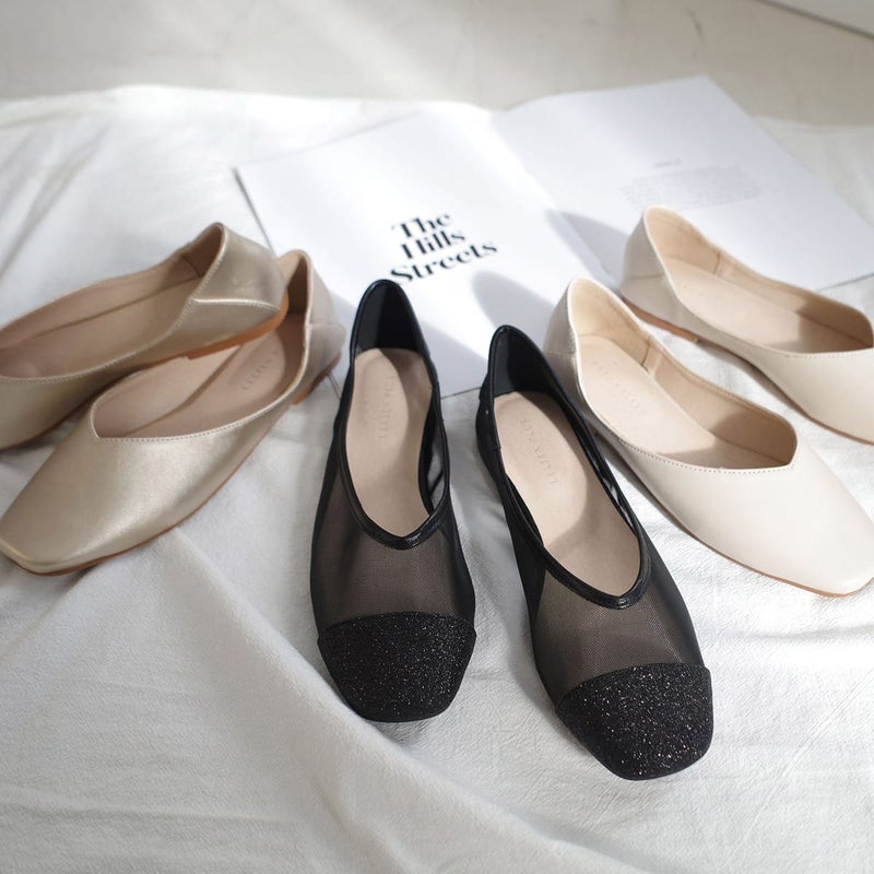 スクエアトゥで大人っぽくきまる!柔らかく、気軽にさっと履けて使いやすいフラットパンプス。