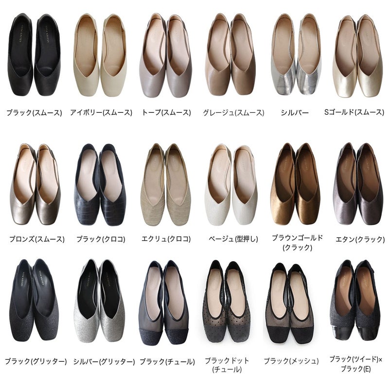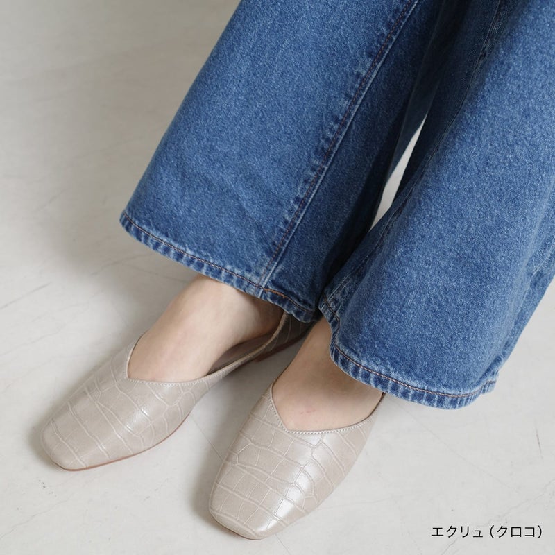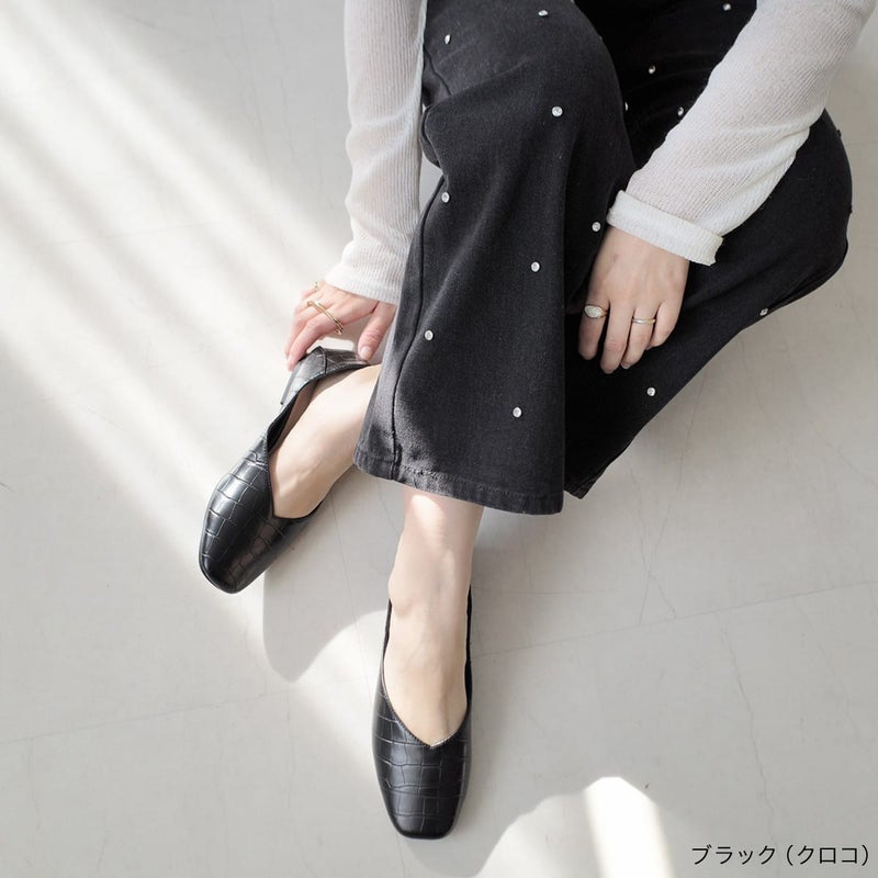 【期間限定SALE】スクエアトゥVカットフラットパンプス レディース
