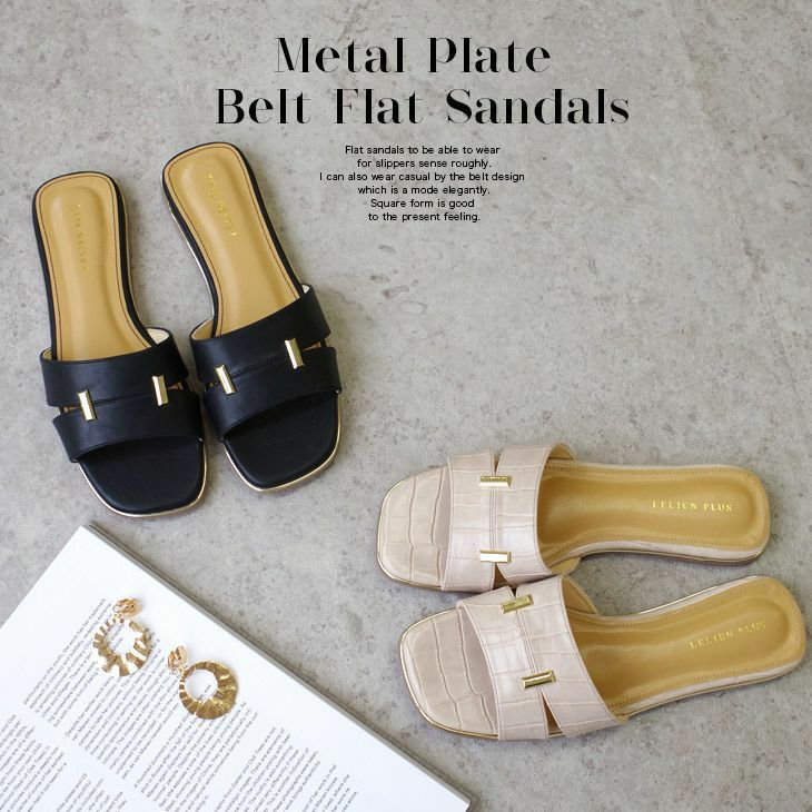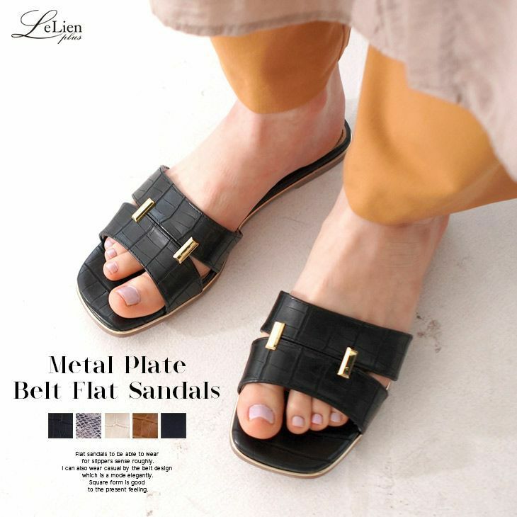 【返品交換不可】【在庫限り!特別価格!】メタルプレート付きベルトフラットサンダル