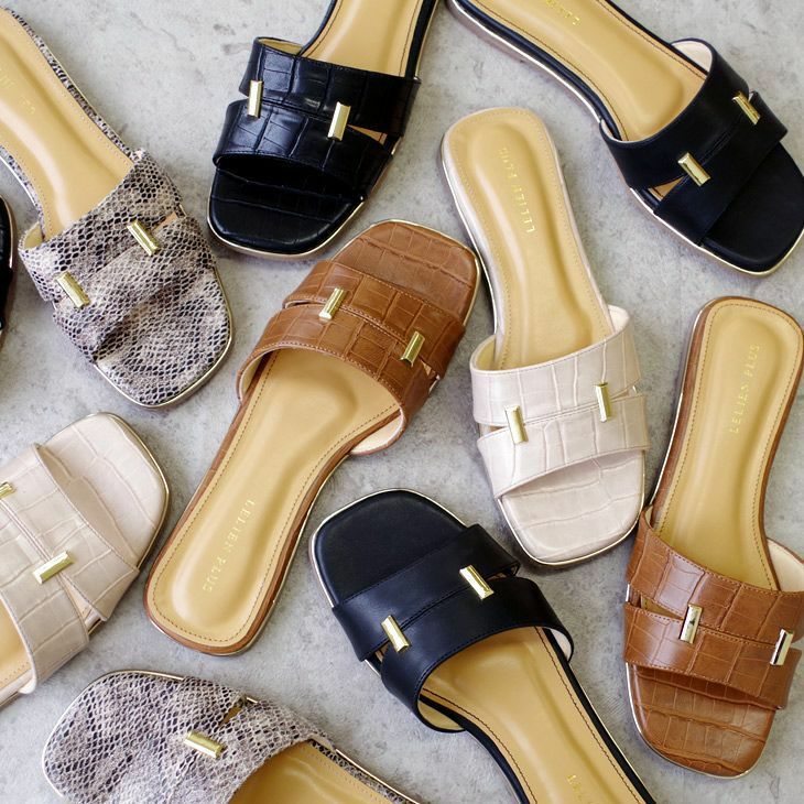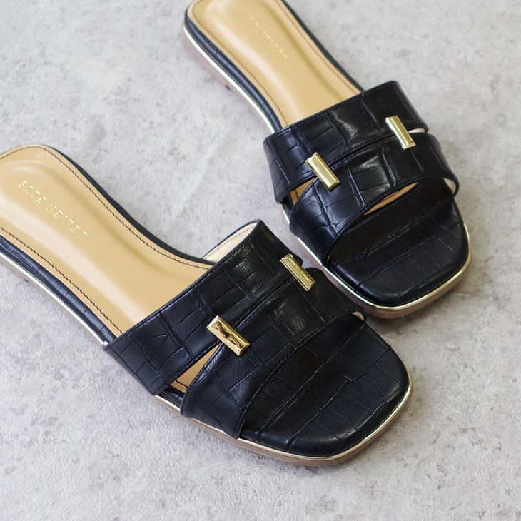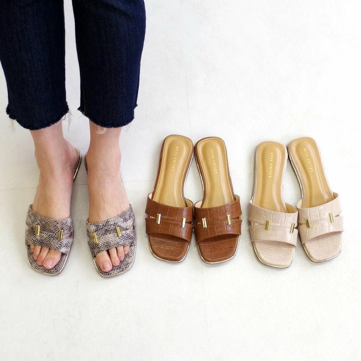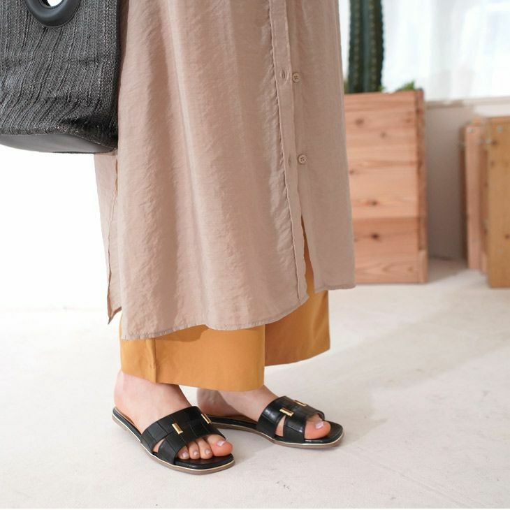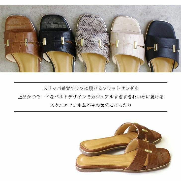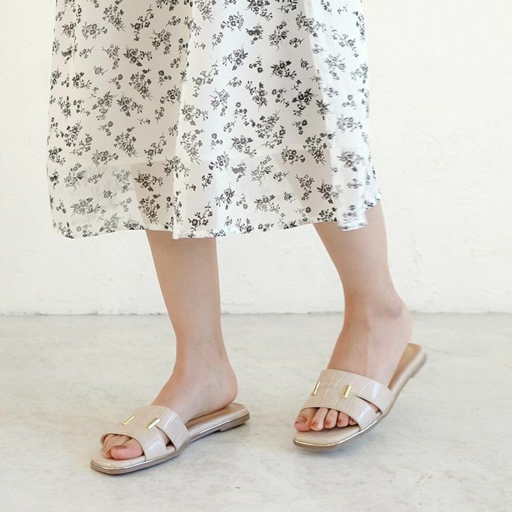 大人の女性にも履いていただけるきれいめなぺたんこサンダルは、一足は持っておきたいアイテム。