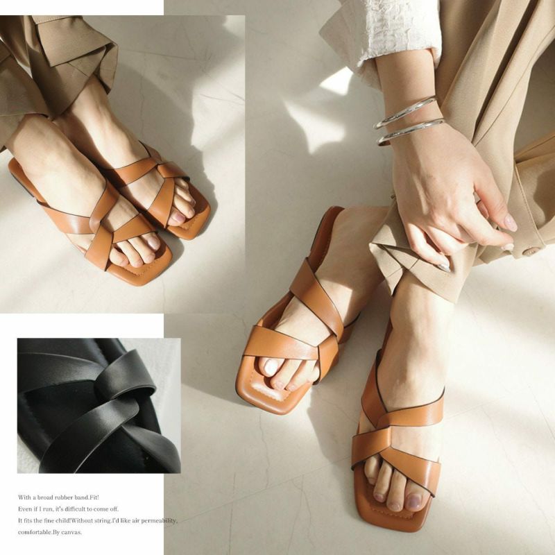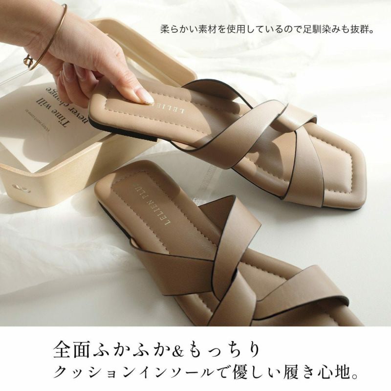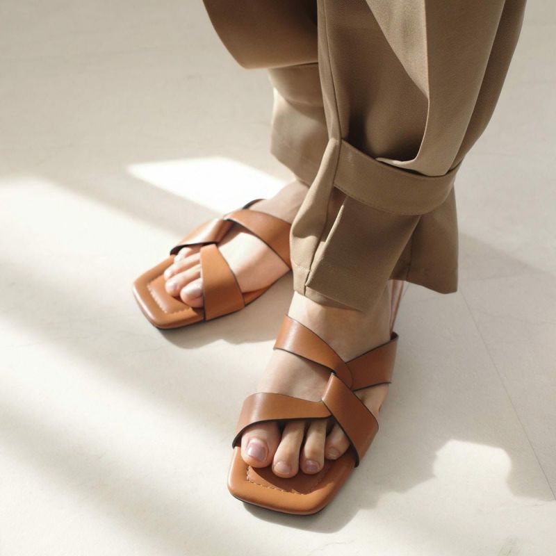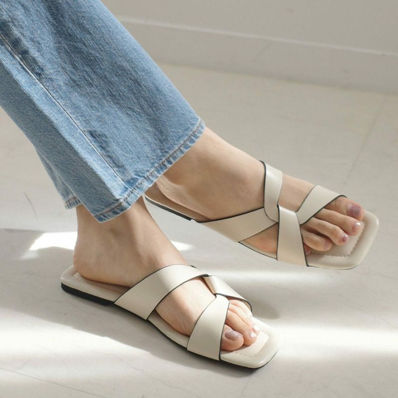 トレンドのスクエアトゥを取り入れたおしゃれなフラットサンダル