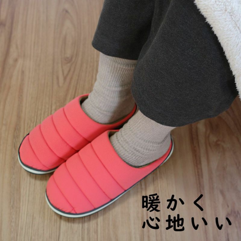 外履きはもちろん室内履きやアウトドアなどにも使える!気軽にスポッ!と履けダウンのような表情に内側フリース素材で、足元あたたか!