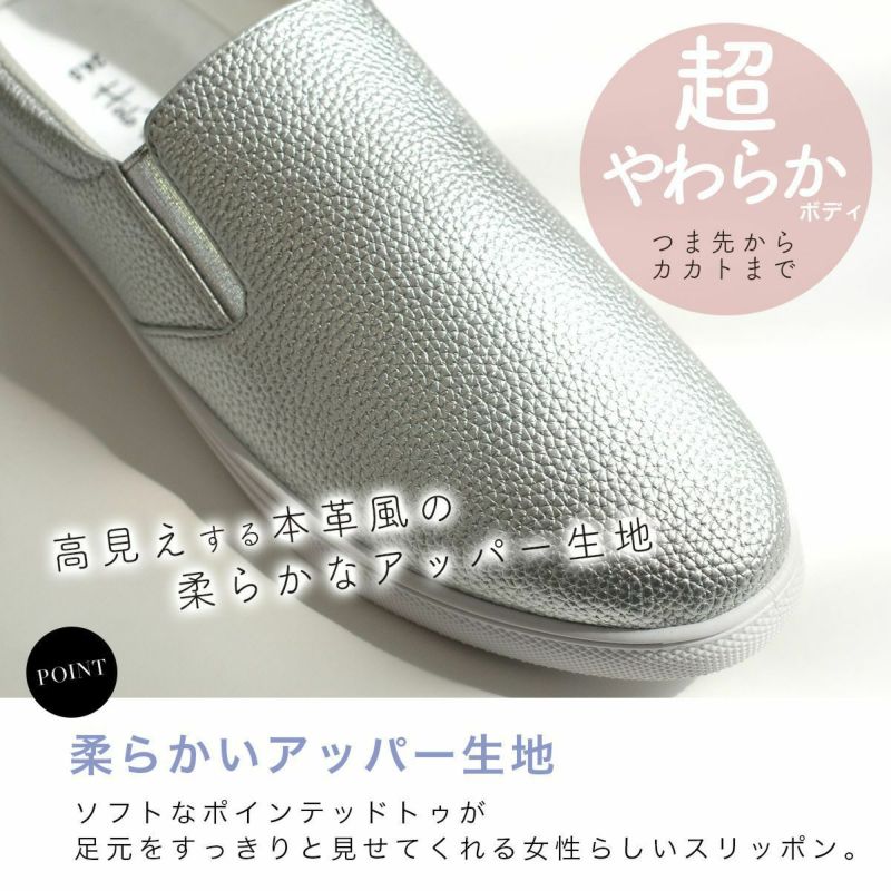 シンプルなデザインで、カジュアルからきれいめまで幅広いスタイルに合わせやすいアイテム!柔らかなアッパー生地と内側クッションで、足全体に優しくフィット。