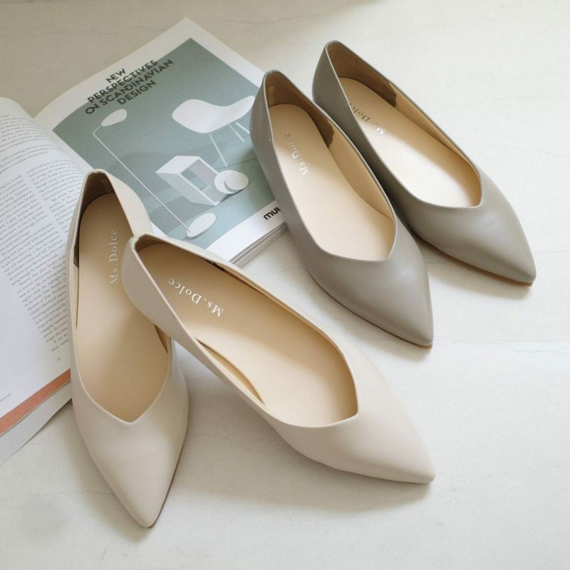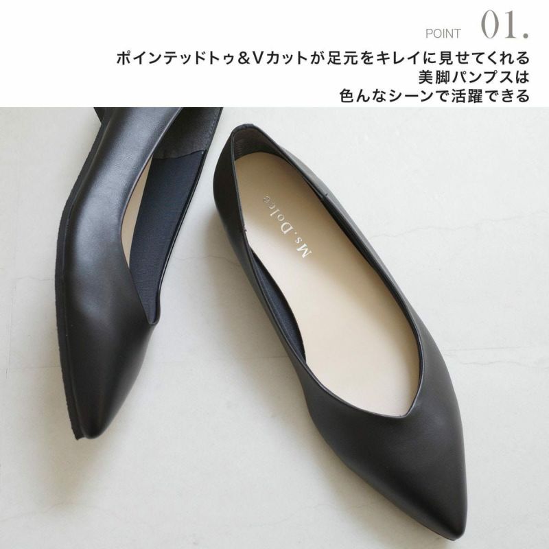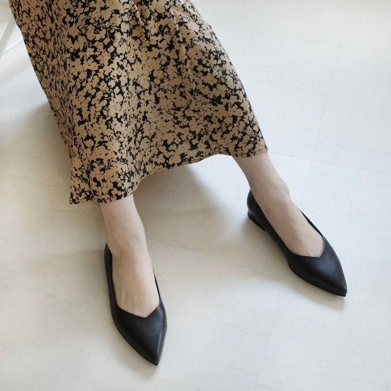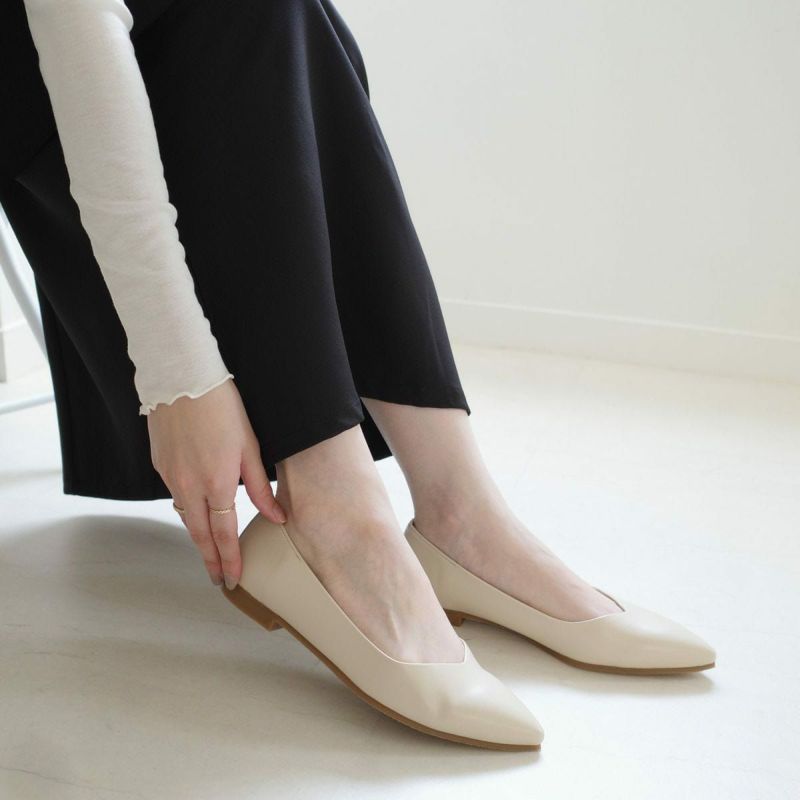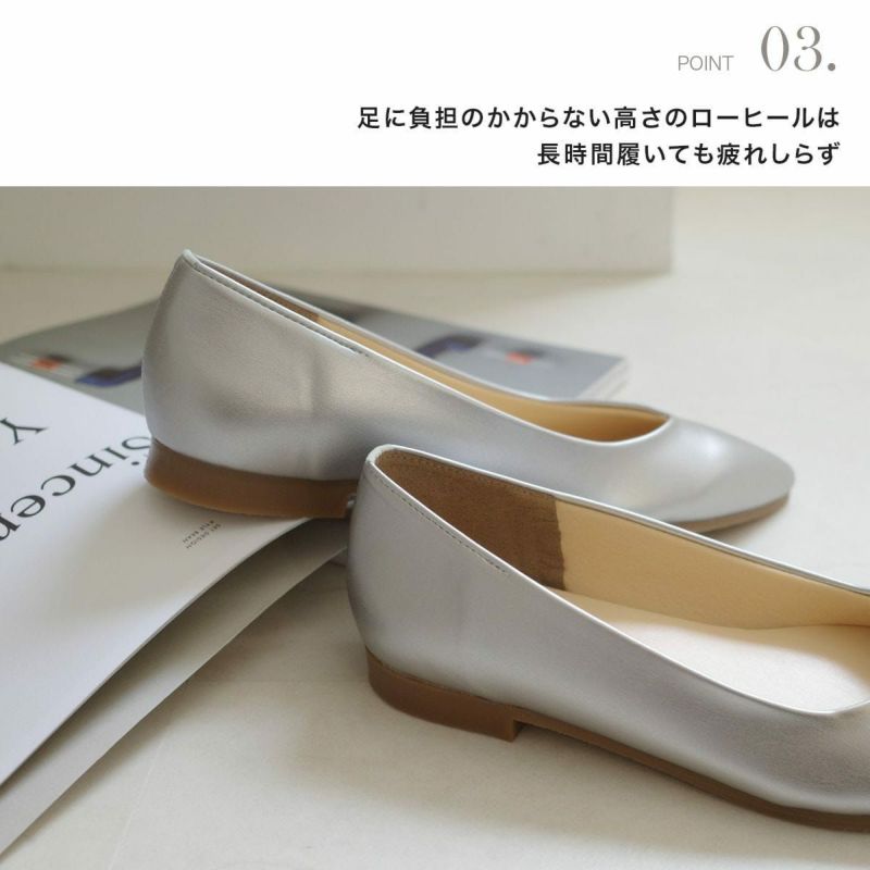 足に負担のかからない心地いい高さのローヒールは長時間履いても疲れにくい。