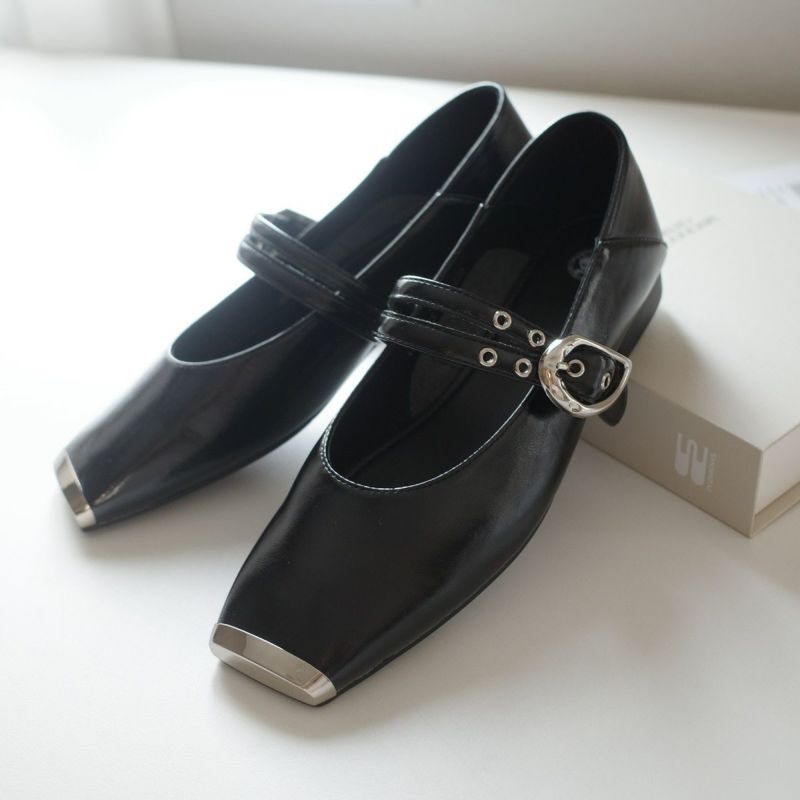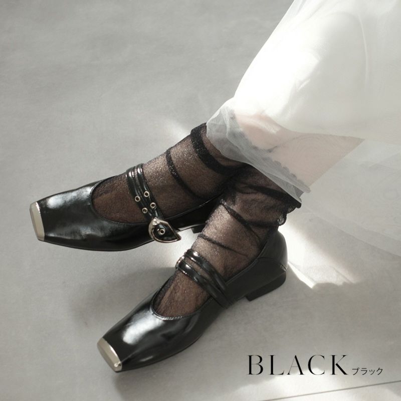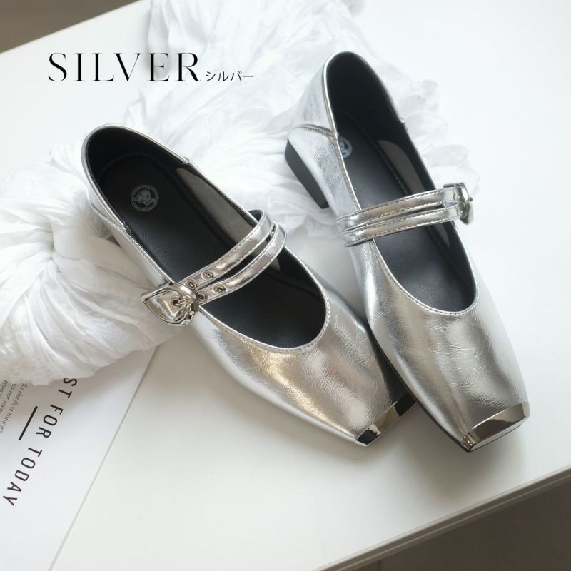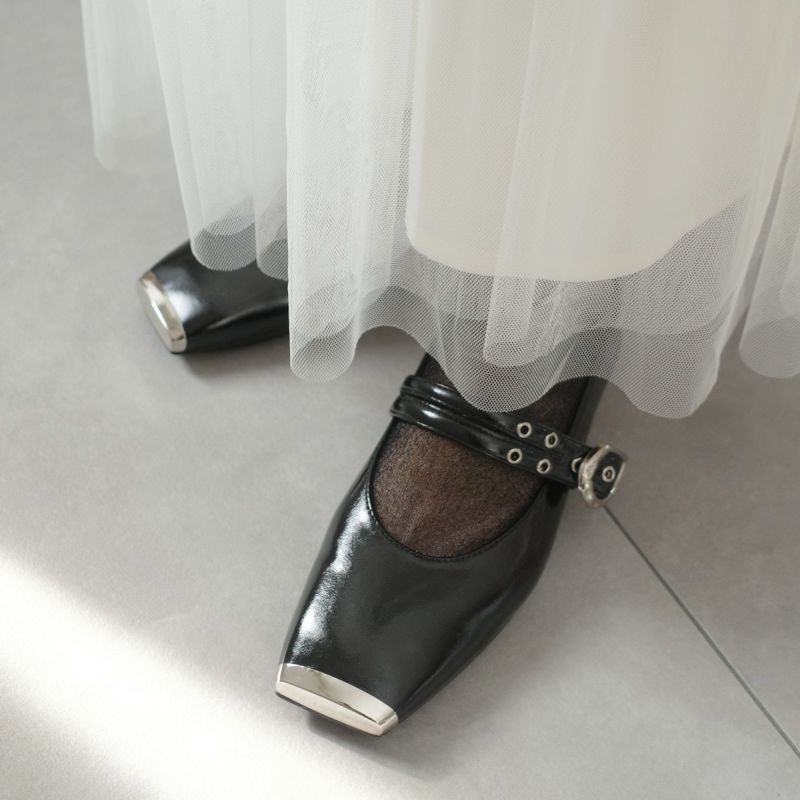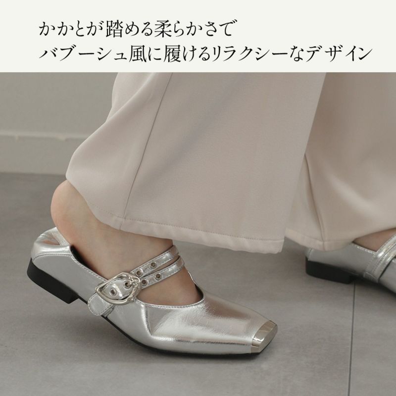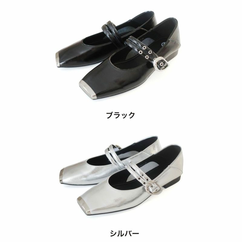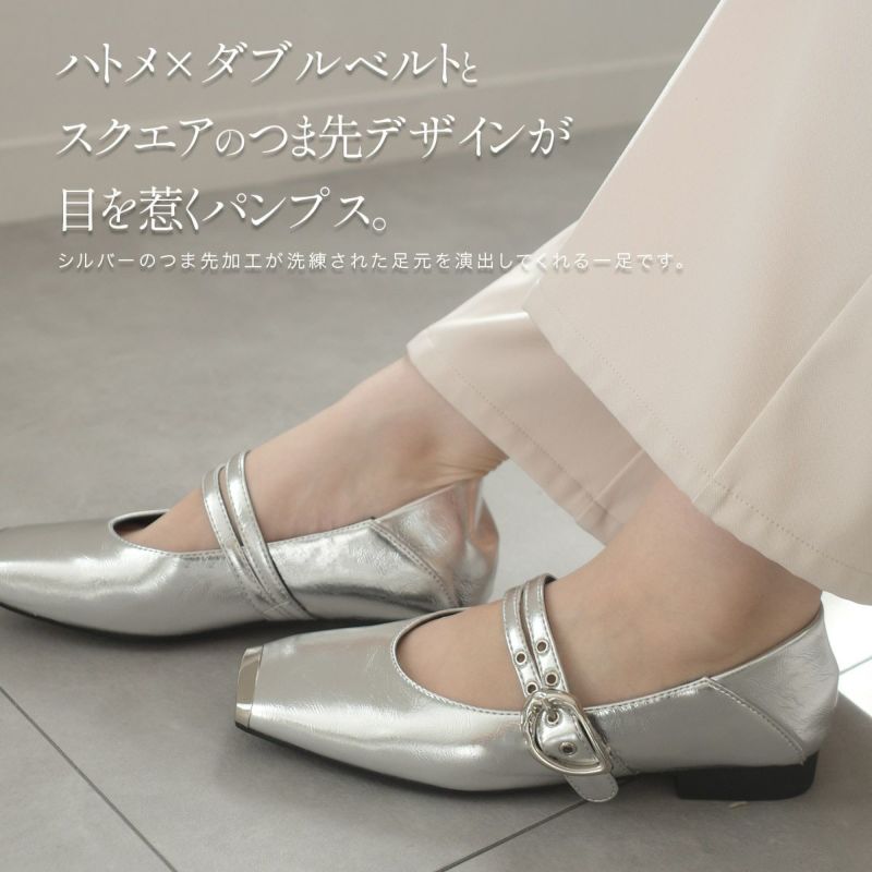 スクエアトゥダブルベルトパンプス レディース