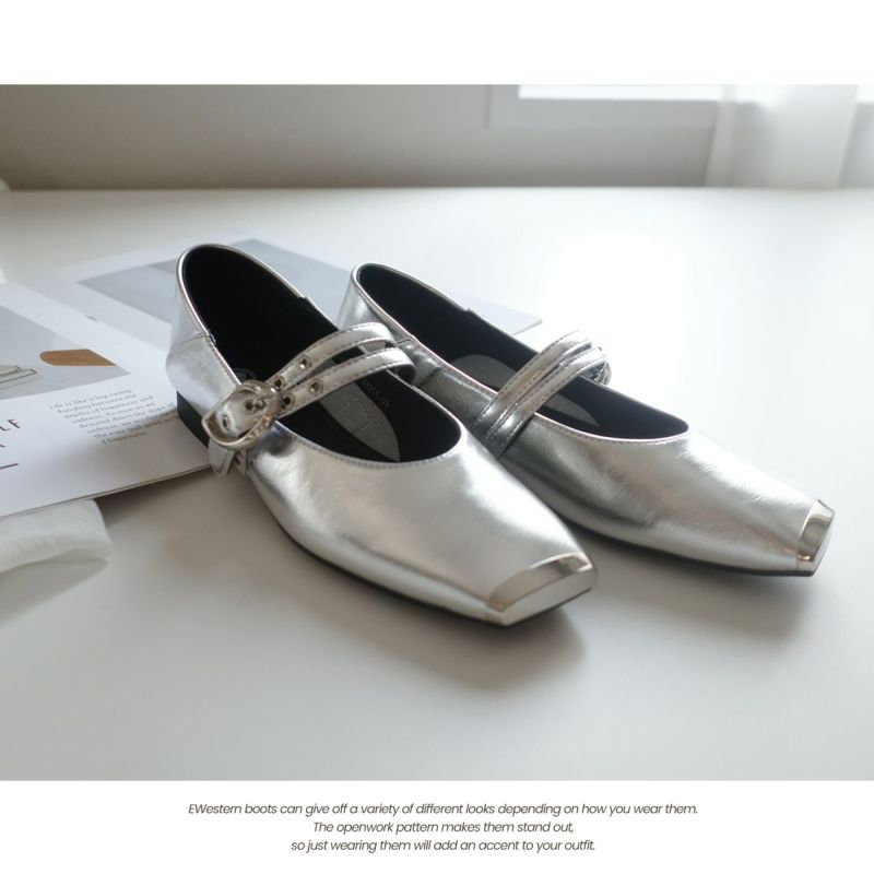 軽量でやわらかなアッパー素材で履きやすく快適な履き心地。ハトメ×ダブルベルトとシルバーのつま先加工が洗練された足元を演出してくれる一足。