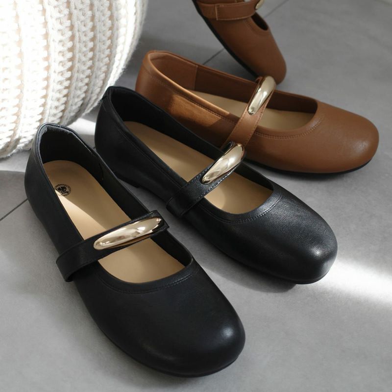 ころんとした丸いフォルムが可愛いカジュアルにもフォーマルにも合わせられて万能な一足