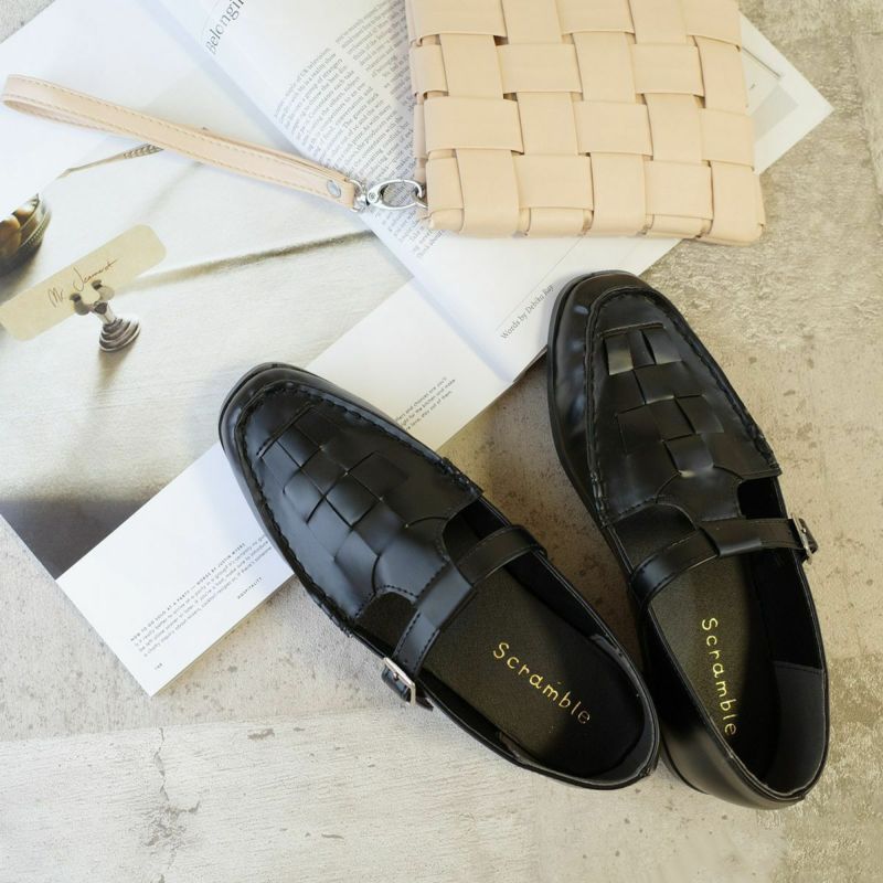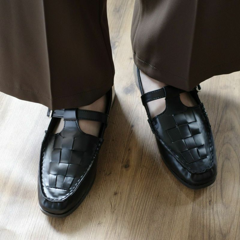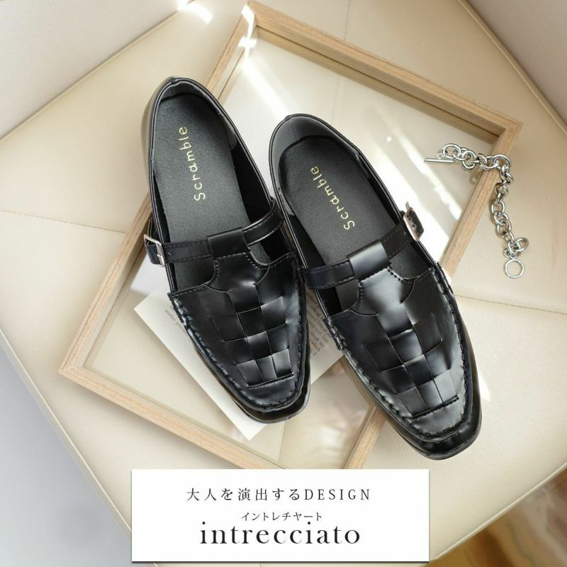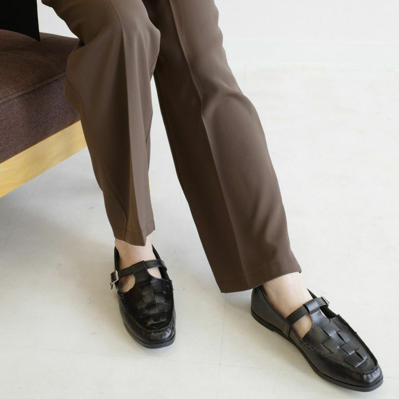 アッパーのイントレチャートデザインが洗練された大人を演出!歩きやすいフラットシューズでスクエアトゥの今っぽさもプラス!