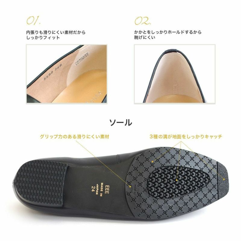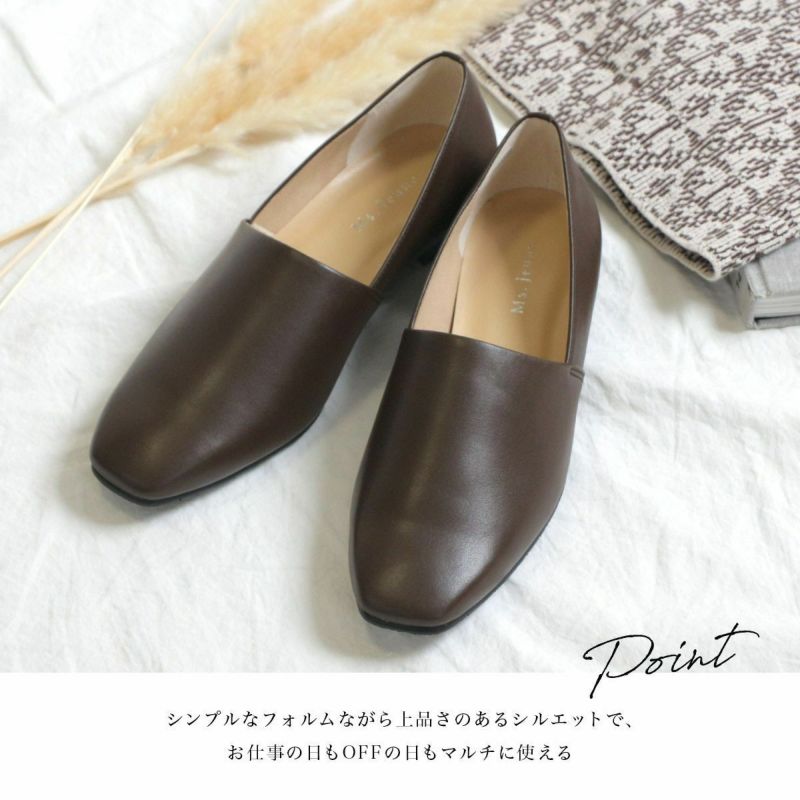 低めのヒールで歩きやすく、スクエアトゥが程よくトレンド感をプラス!シンプルなフォルムながら上品さのあるシルエットで通勤から普段使いまでマルチにお使いいただけます。