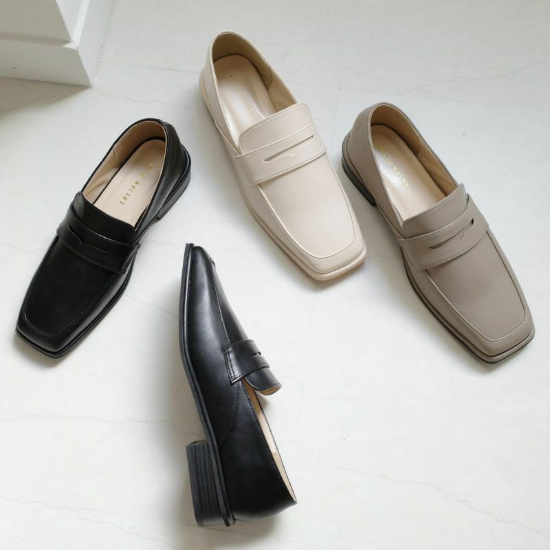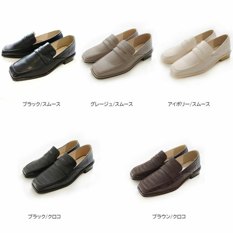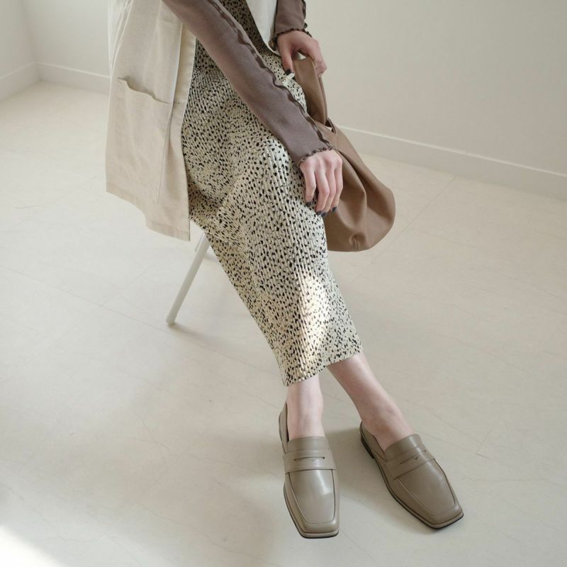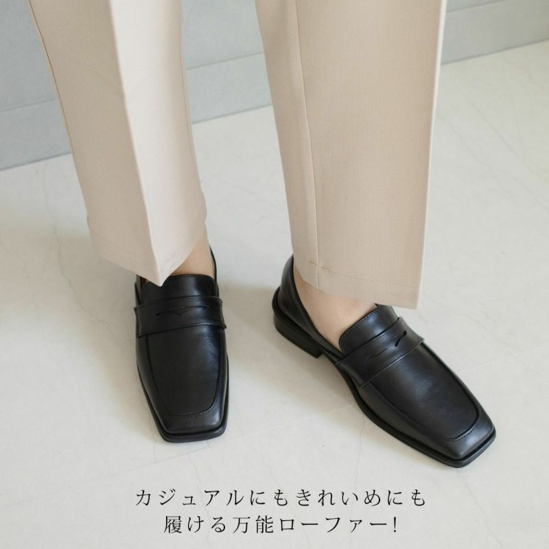 定番のコインローファーもスクエアトゥでトレンド感UP。