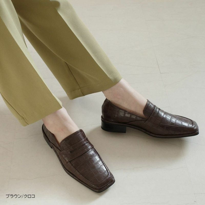 【返品交換不可】【在庫限り!特別価格!】スクエアトゥコインローファー レディース