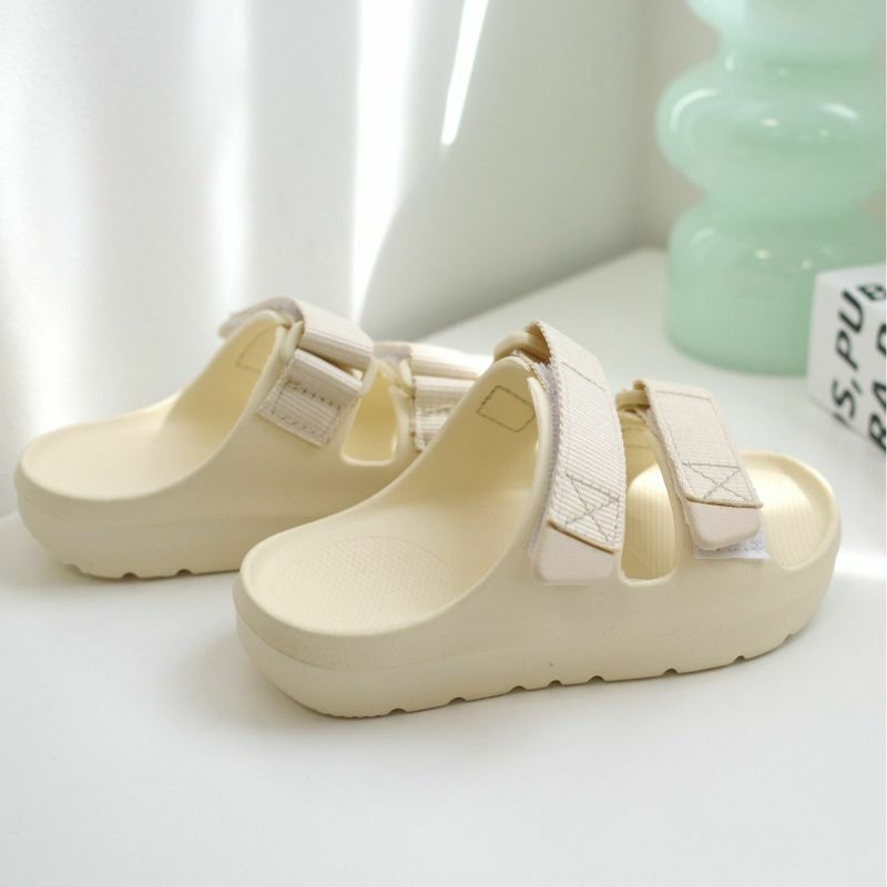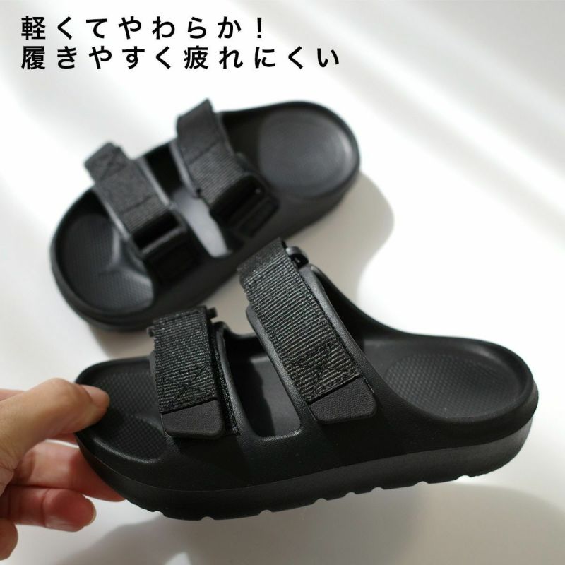 マジックテープ仕様のダブルベルトで調節可能でしっかりと足を固定できるので、たくさん動いても脱げにくい!やわらかく屈曲性のあるソールで歩きやすく疲れにくい。