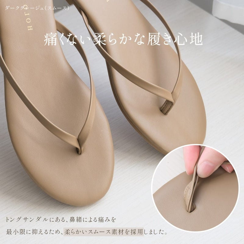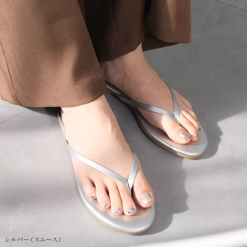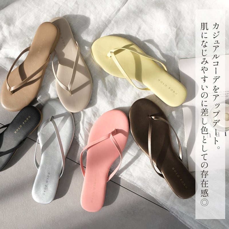全面ふかふかインソールで履き心地柔らかく、ぺたんこすぎない1cmソールで長時間履いても疲れにくくラクチン!華奢なトングがカジュアルすぎず大人っぽく履ける。