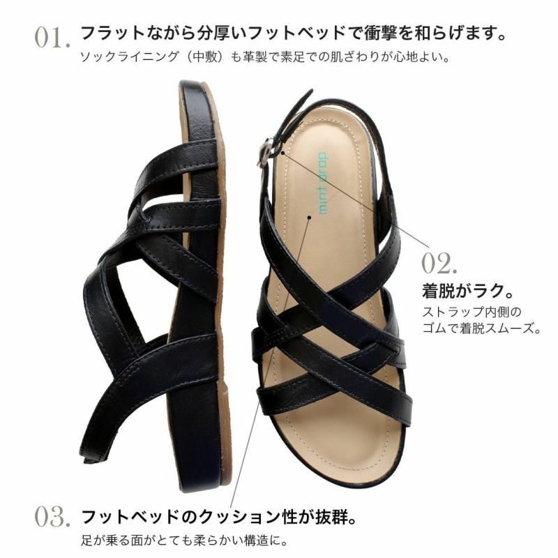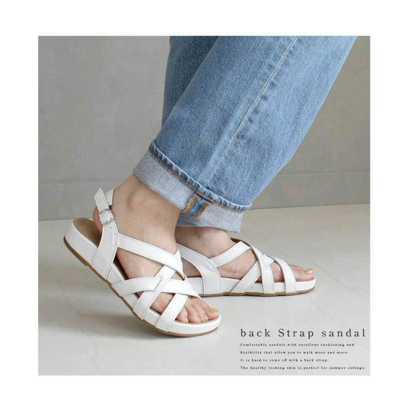 クロスベルトの程よい肌見せが大人カジュアルコーデにぴったり。フットベッドのクッション性が抜群!足が乗る面が柔らかい構造になっています。
