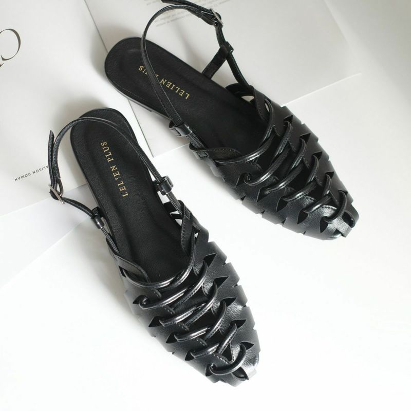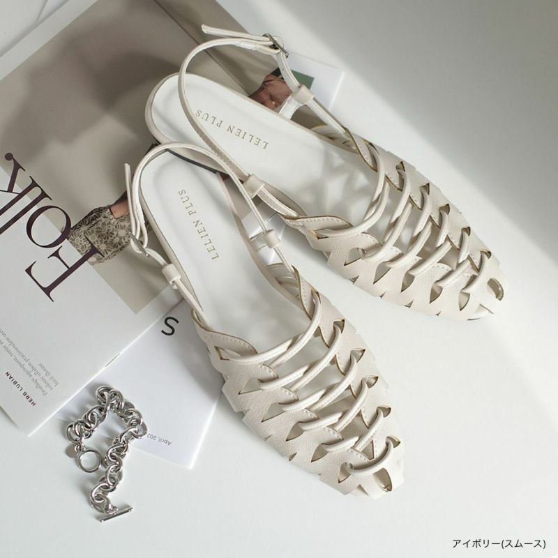 カットデザインと華奢ストラップが程よい抜け感と大人可愛い印象