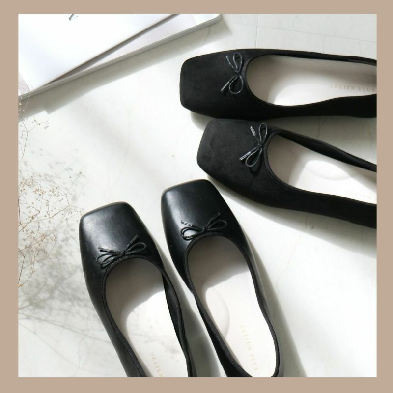 急な雨でも安心な撥水加工を施したスクエアトゥバレエシューズ