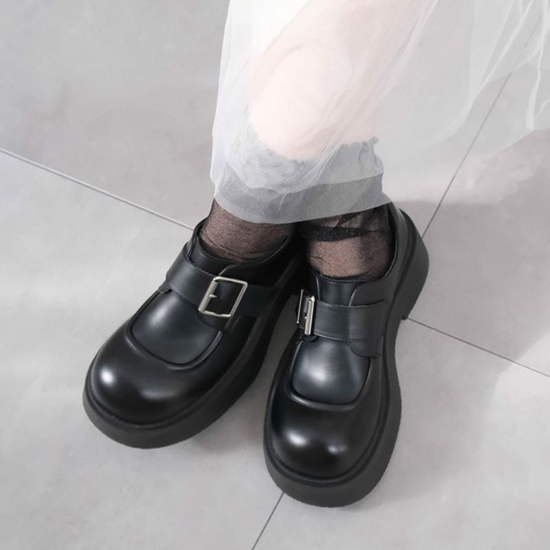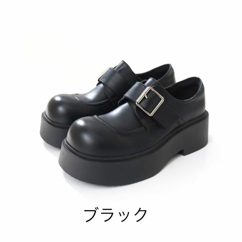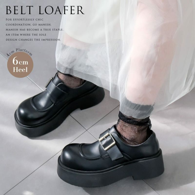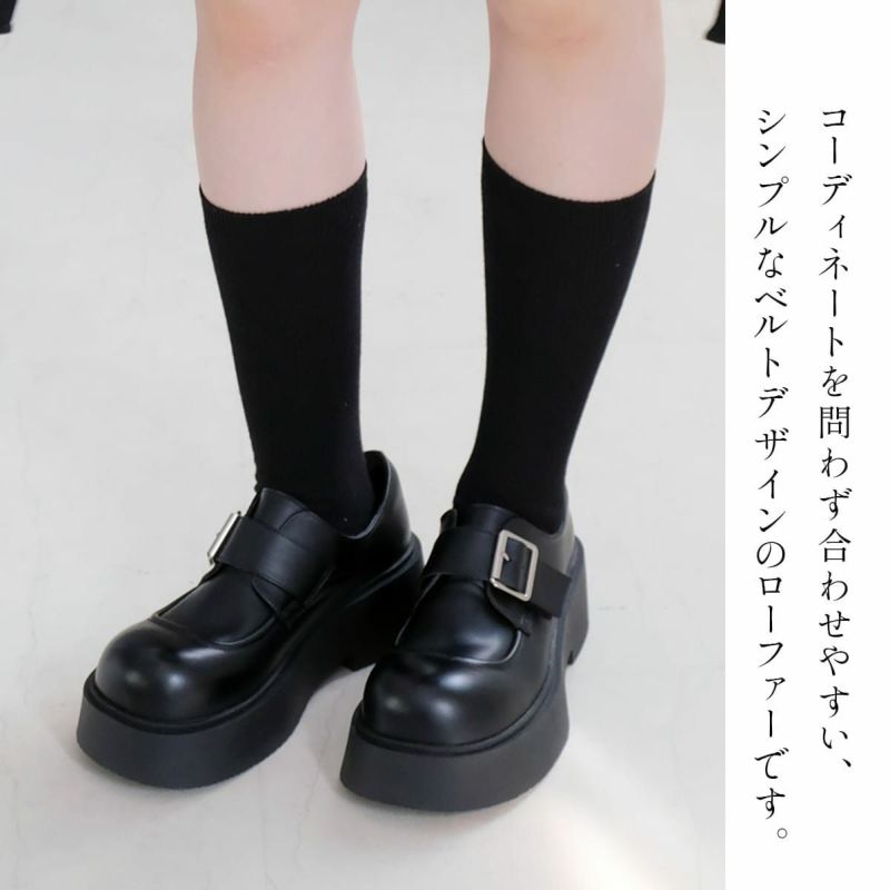 ベルトバックル厚底ローファー レディース