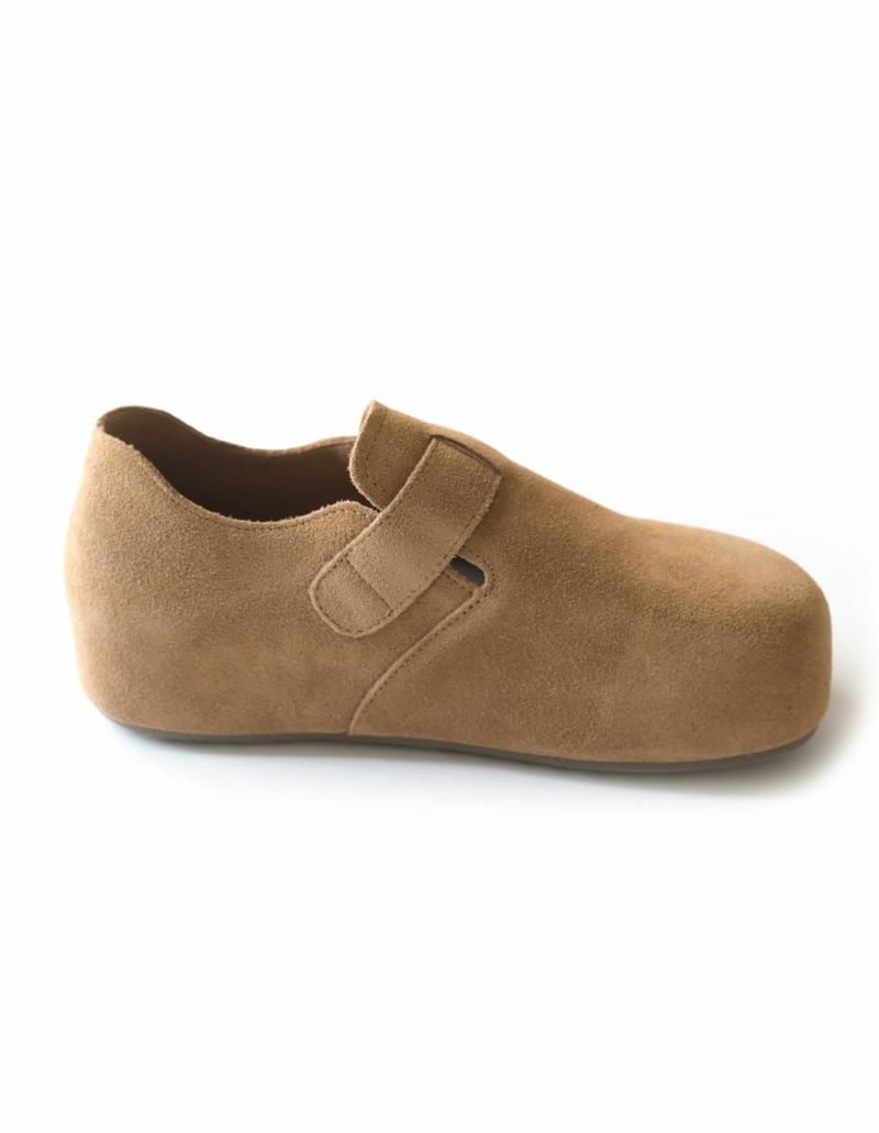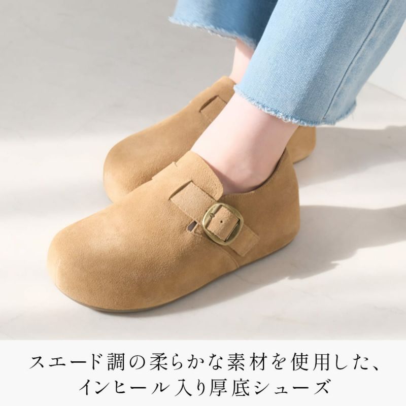 スエード調の柔らか素材を使用したインヒール入り厚底シューズ