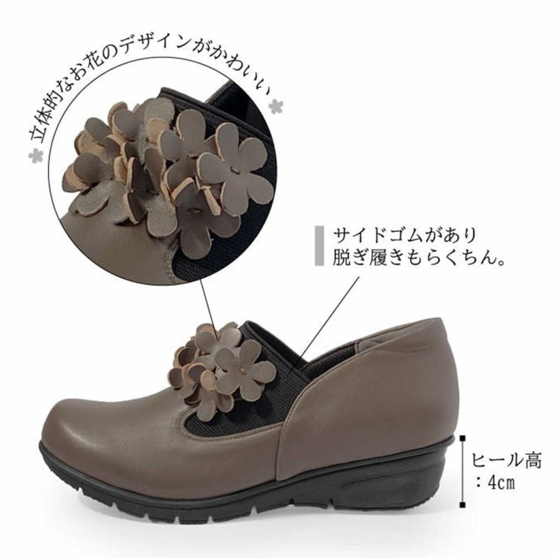 サイドゴムがあり脱ぎ履きもらくちん。カラー展開は落ち着いたブラック、ダークグレーのためどんなコーディネートにも合わせやすく、
