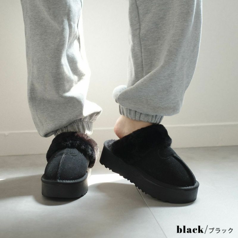 厚底4cmソールふわふわの内側全面ファーで足元あったか。