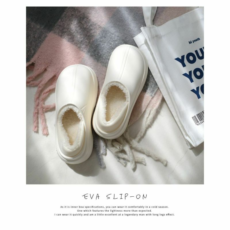 ぽってりしたフォルムとボリュームソールが可愛いEVAスリッポン