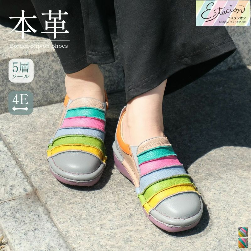【在庫限り!特別価格!】スリッポンシューズレディース牛革コンフォートシューズフィールドEstacion レディース