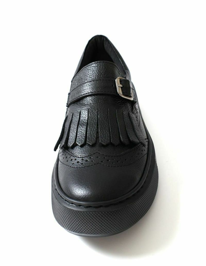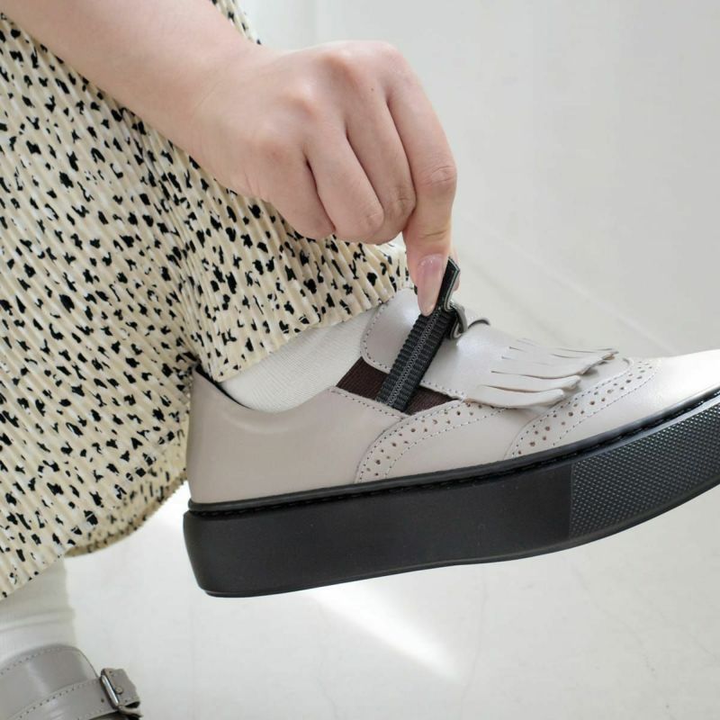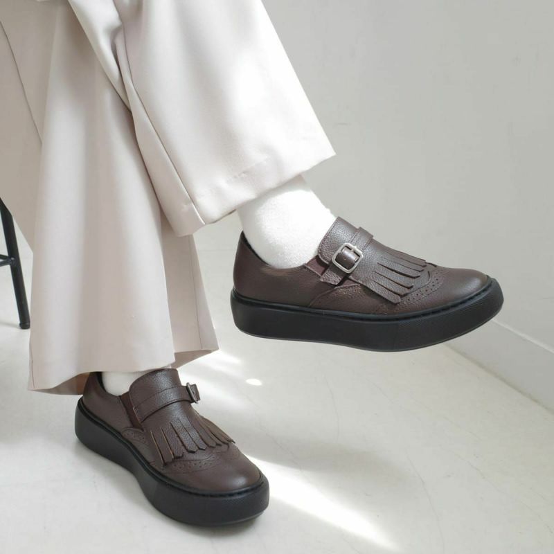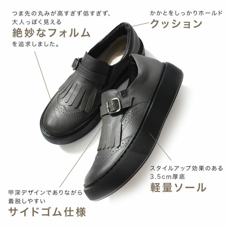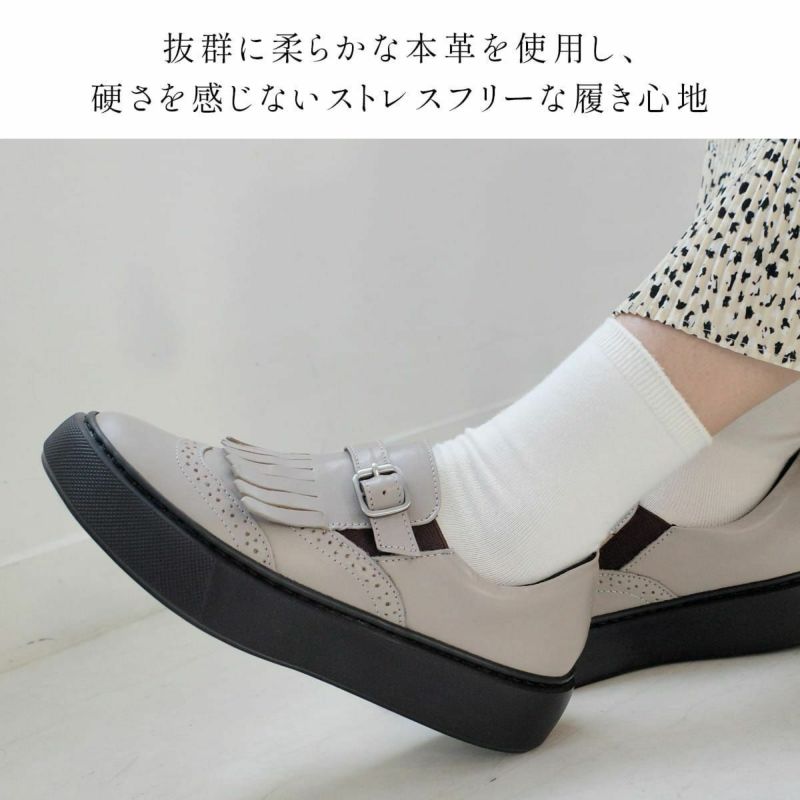 本革フリンジ付きスリッポン厚底ローファー レディース