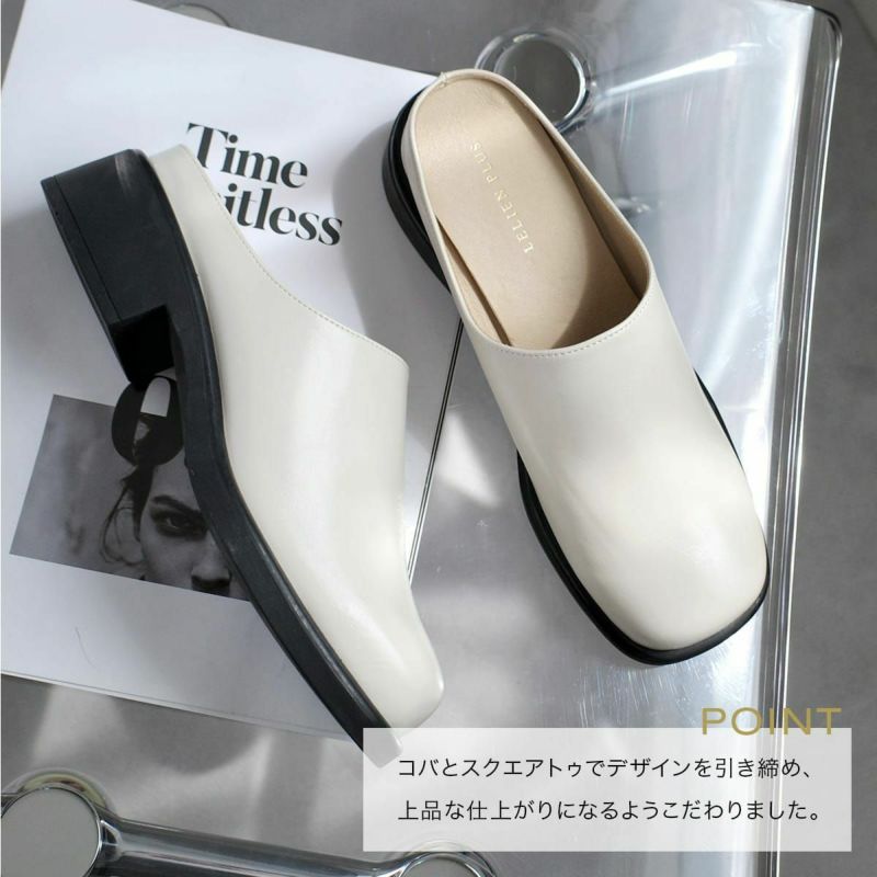 スクエアトゥスライドローファーサボクロッグシューズ レディース