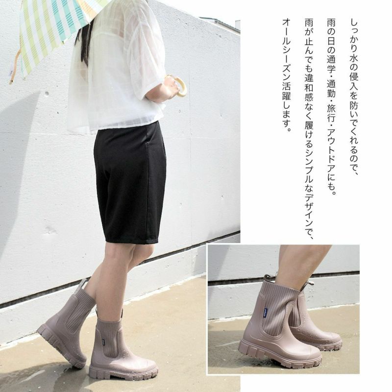 雨の日もスタイリッシュに履けるサイドゴアレインブーツ