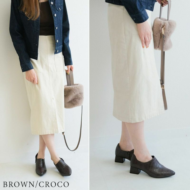 太めのチャンキーヒールで安定感も抜群で歩きやすいW低反発クッションで柔らかな履き心地