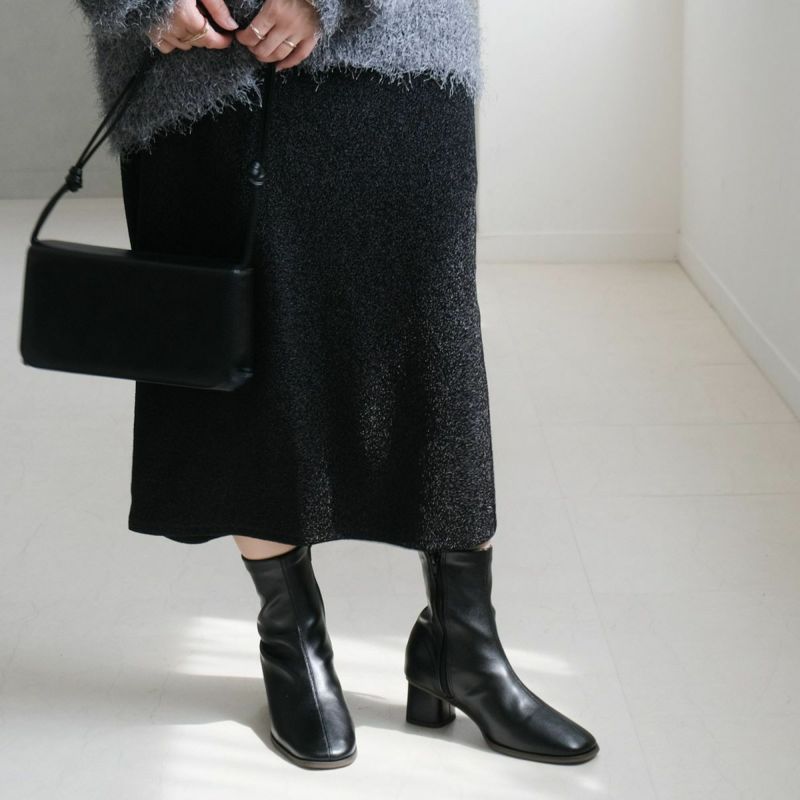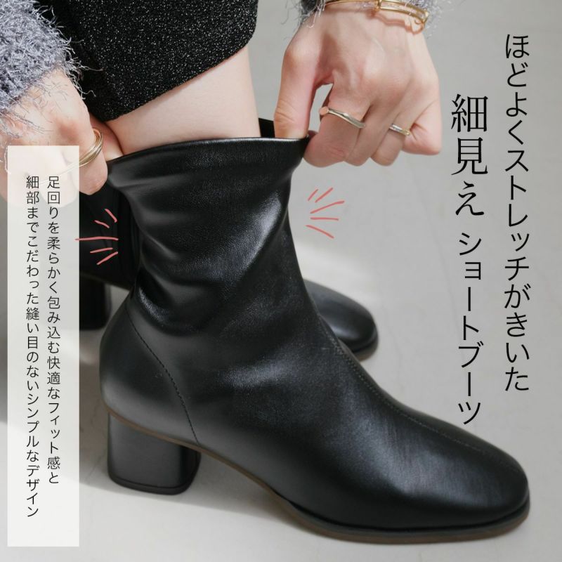 柔らかストレッチで細見え!スクエアトゥショートブーツ