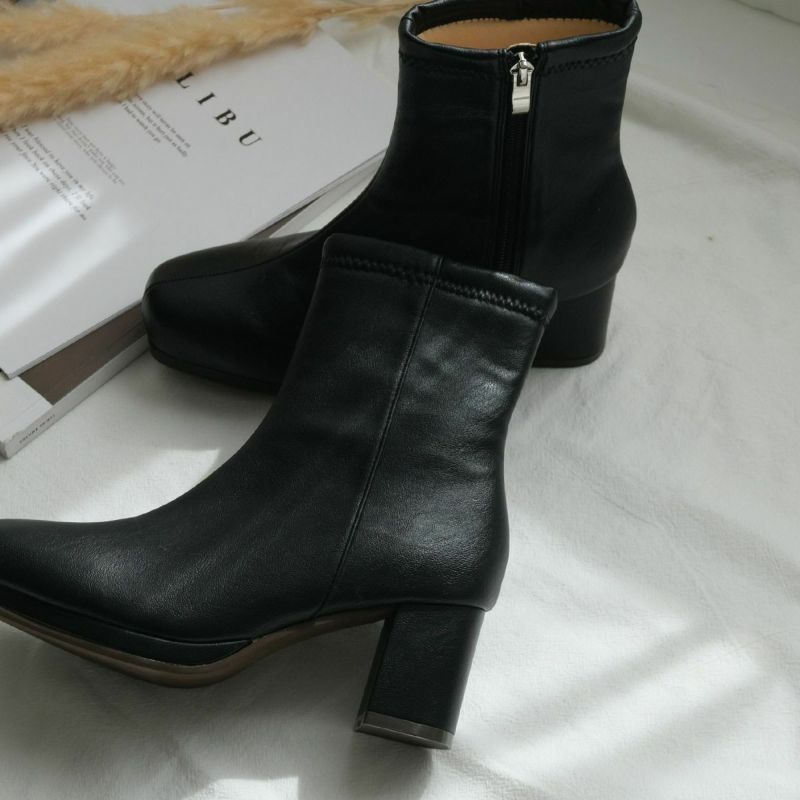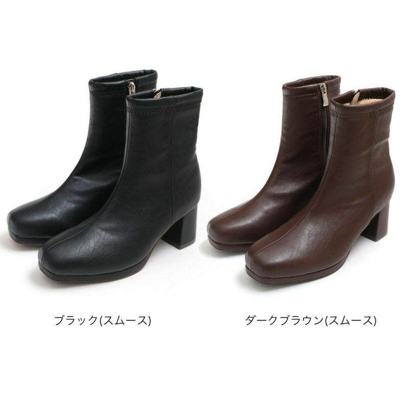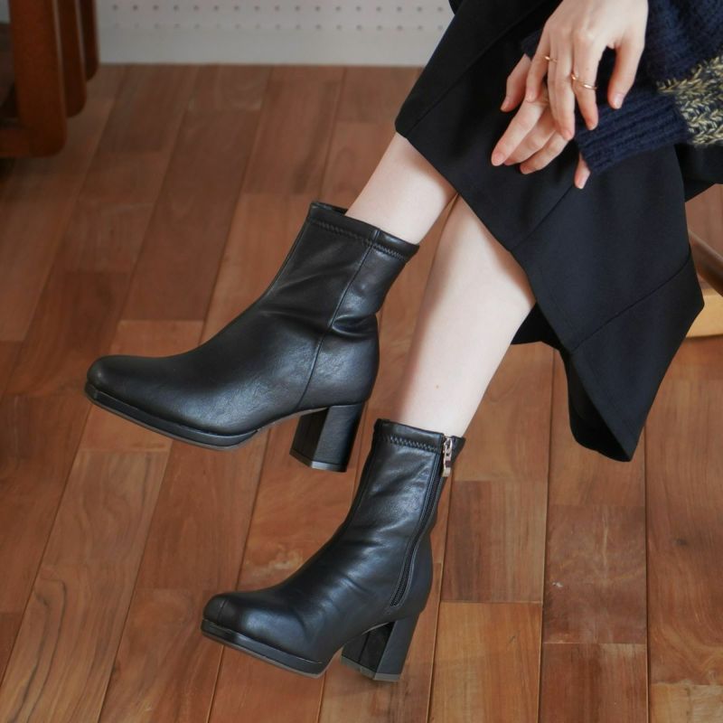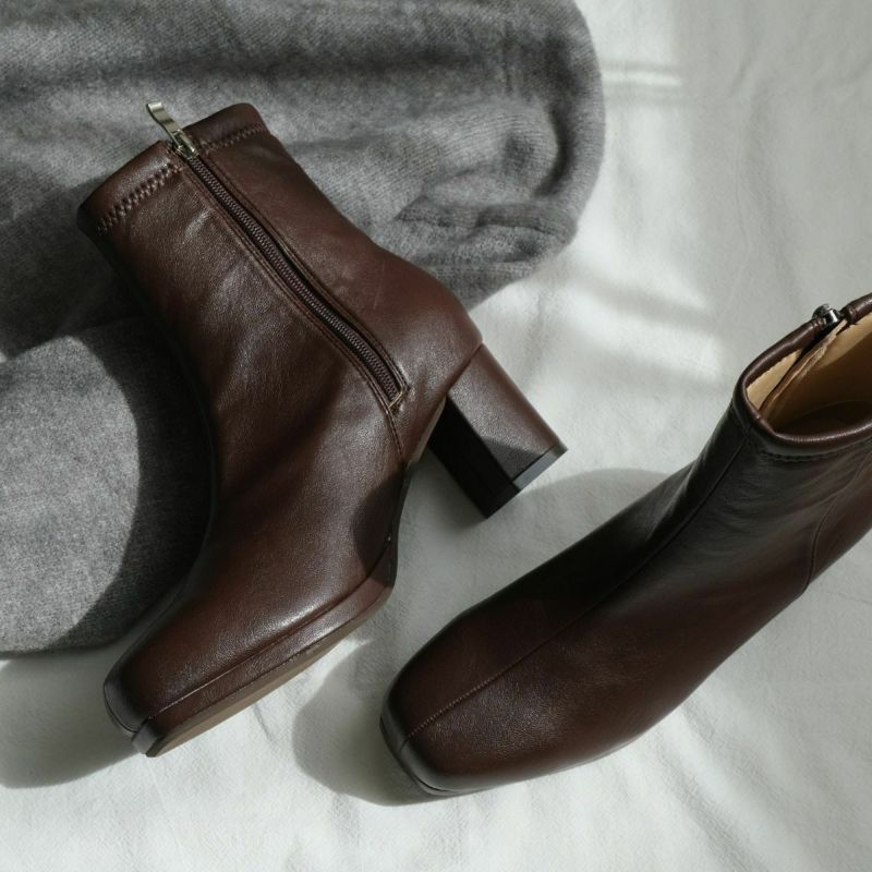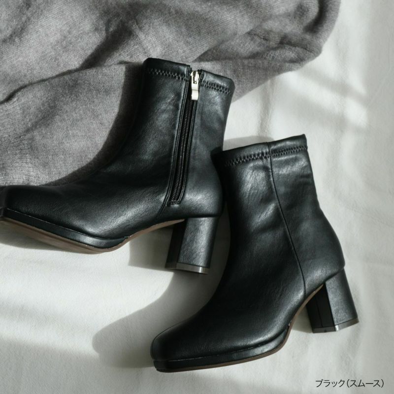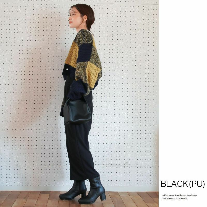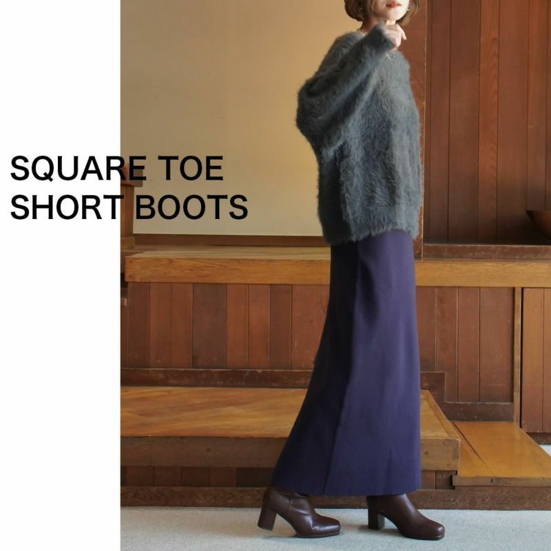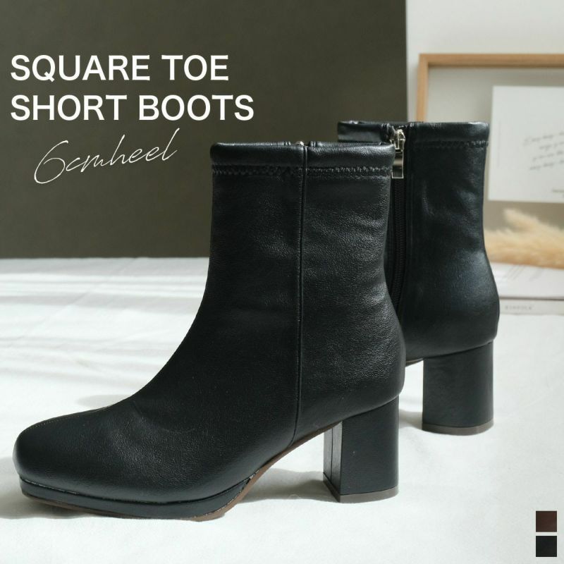 ワントーンで統一されたスクエアトゥのデザインが特徴的なショートブーツ