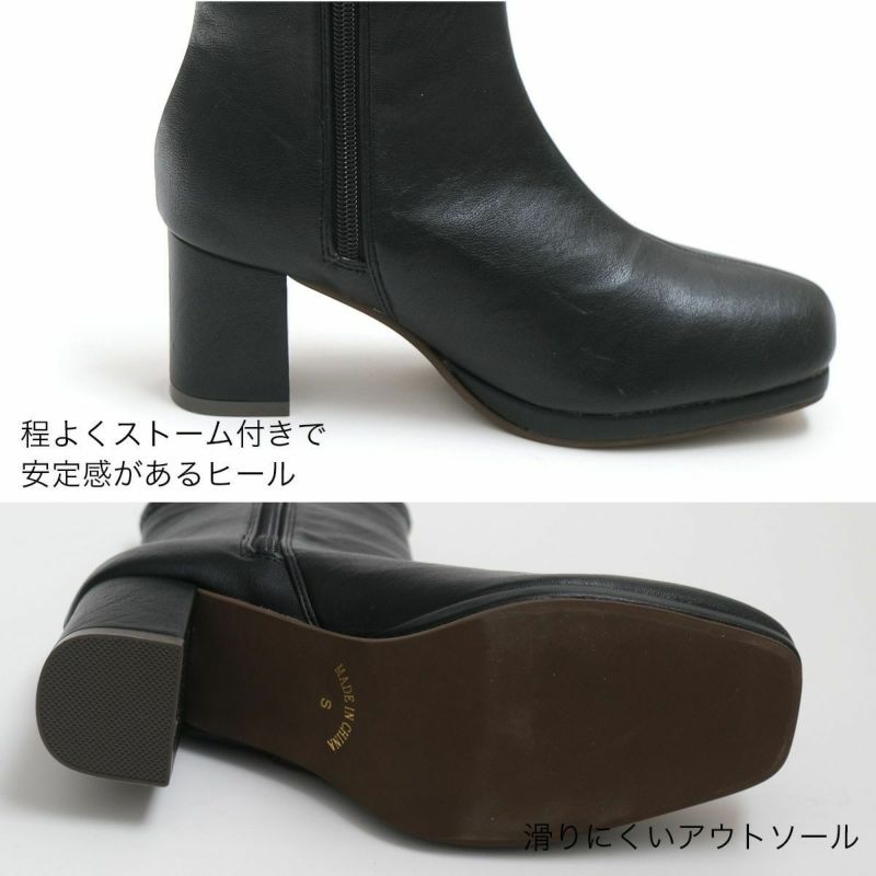【在庫限り!特別価格!】ストーム付きスクエアトゥショートブーツ レディース