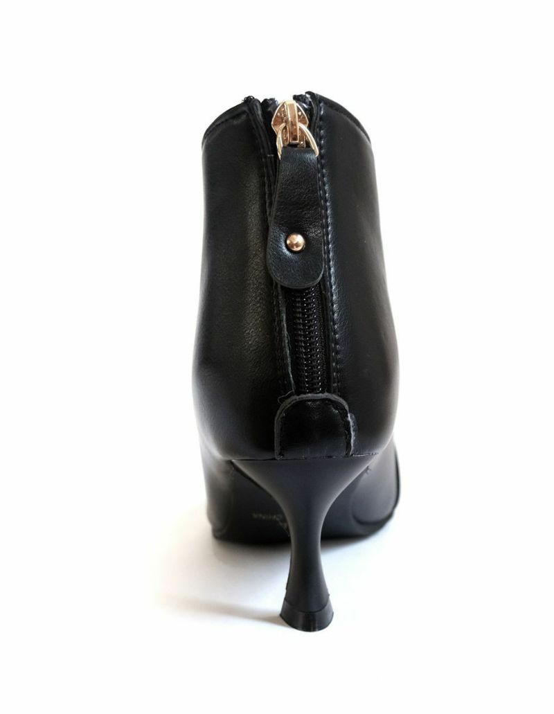 バックファスナーで脱ぎ履きもスムーズシャープなポインテッドトゥがスタイリッシュなショートブーツ。