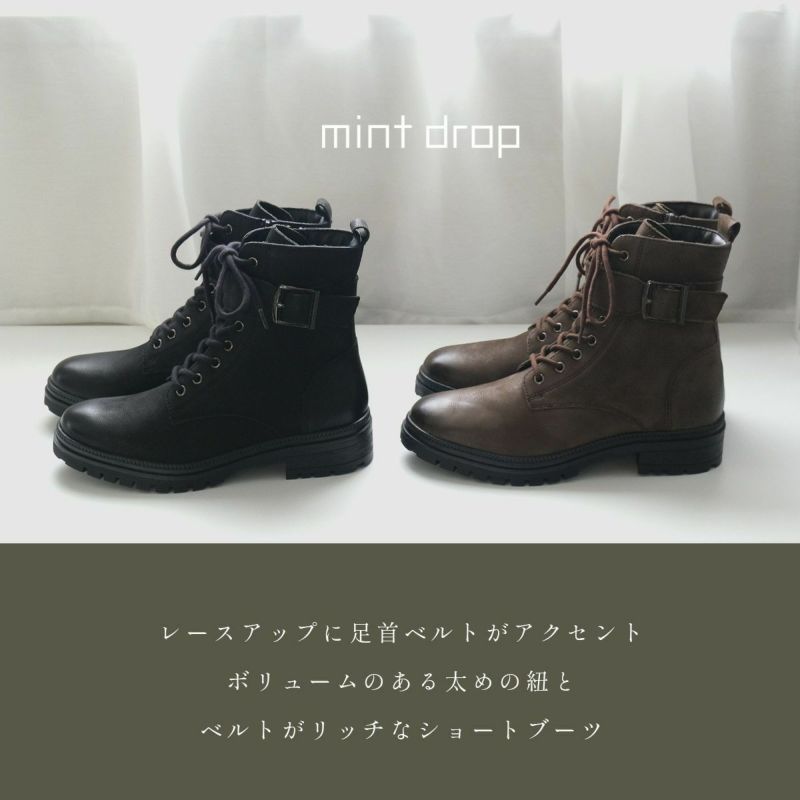 ベルト付きレースアップ 編み上げ ブーツ レディース