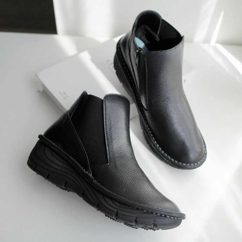 サイドゴムを独特なカッティングで魅せるデザインが美しいブーツ