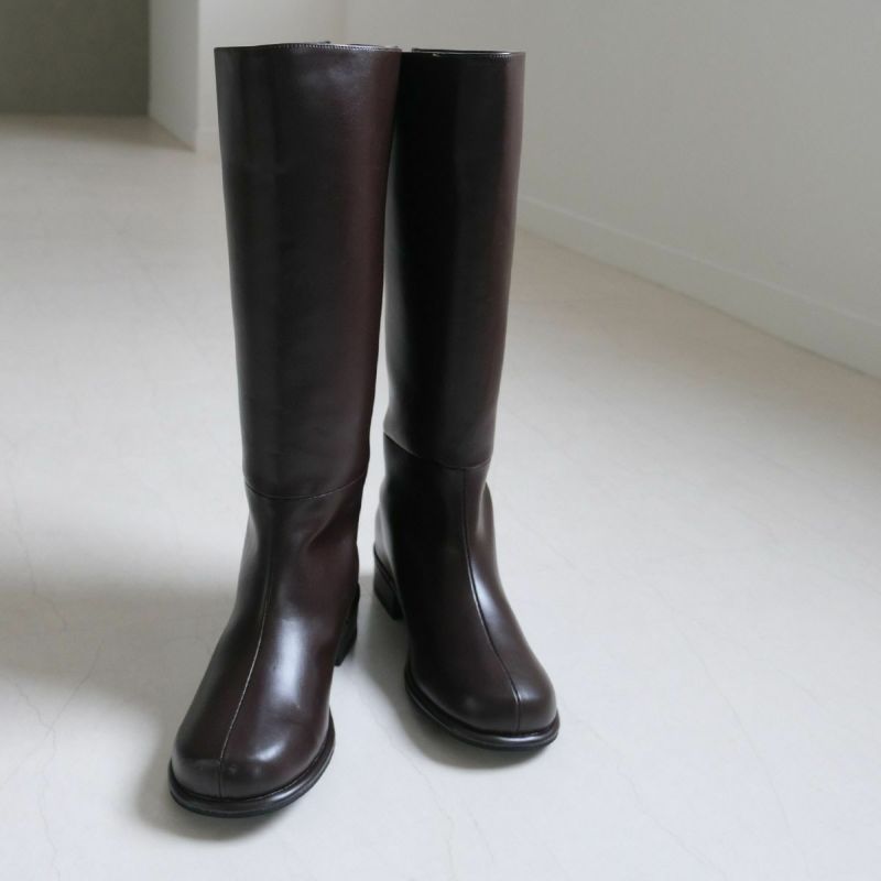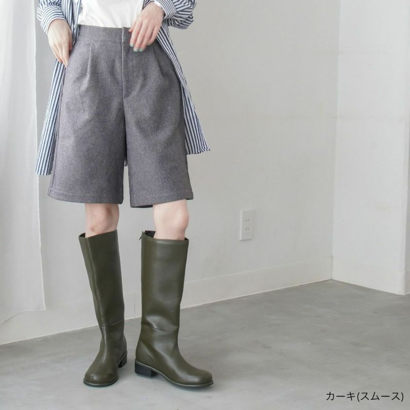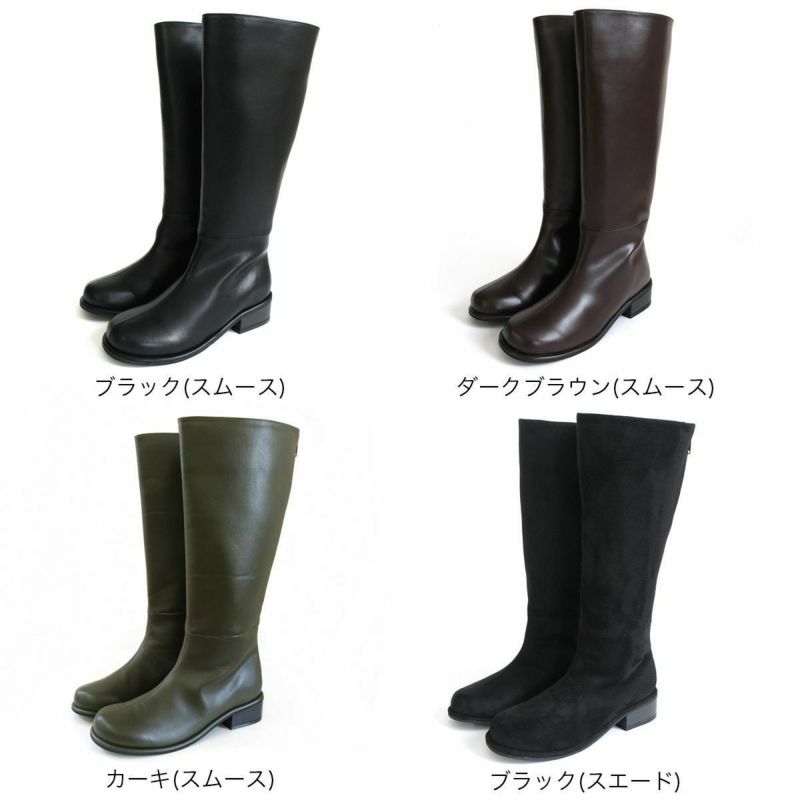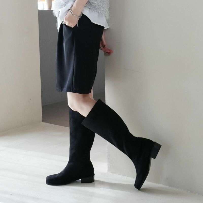 安定感ある低めヒールと大人かわいいラウンドトゥのロングブーツ