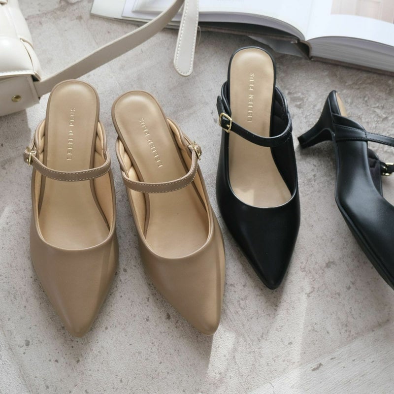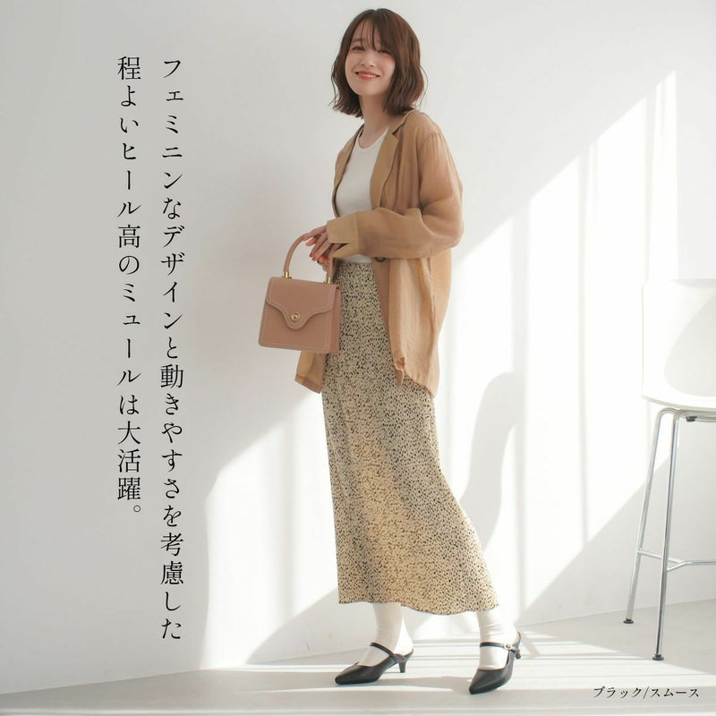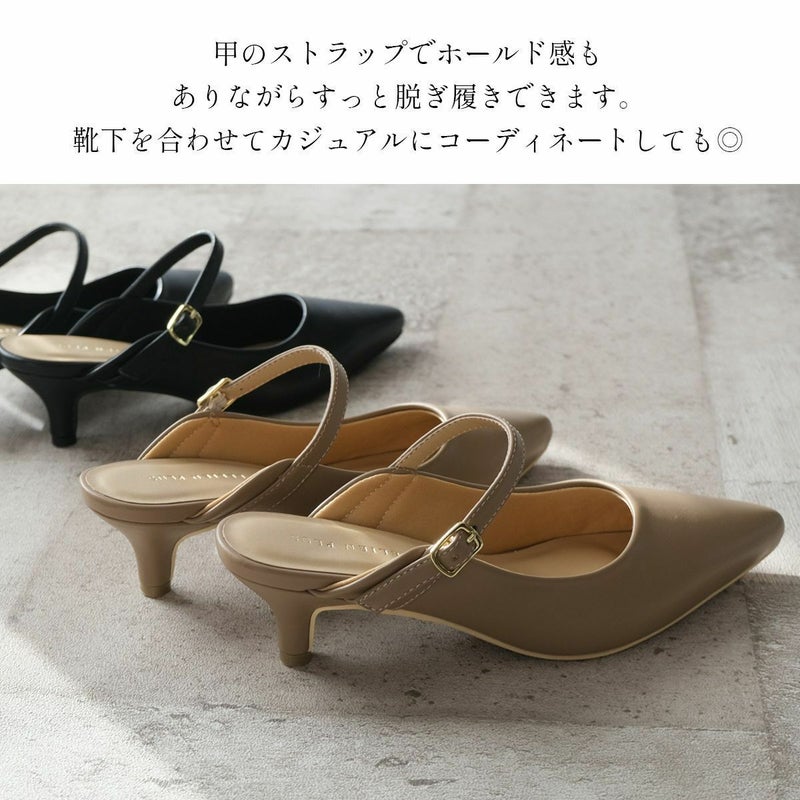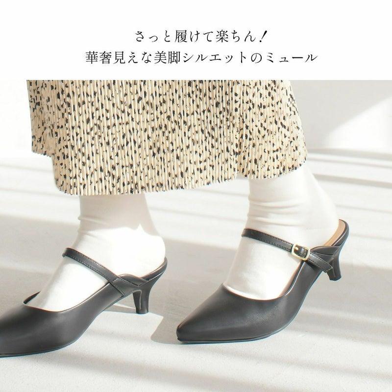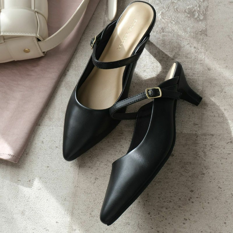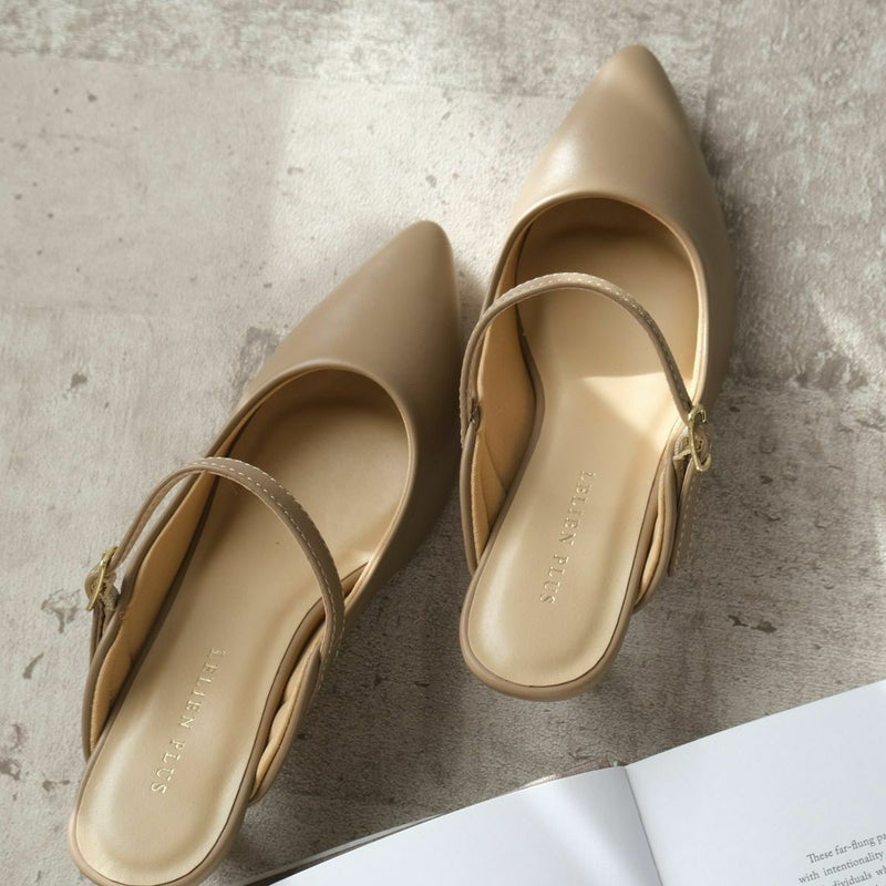 フェミニンなデザインと動きやすさを考慮したストラップミュール