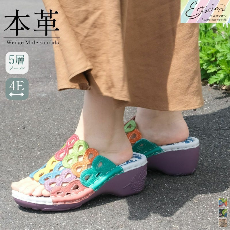Estacion~エスタシオン~・カラフルモチーフミュールサンダル