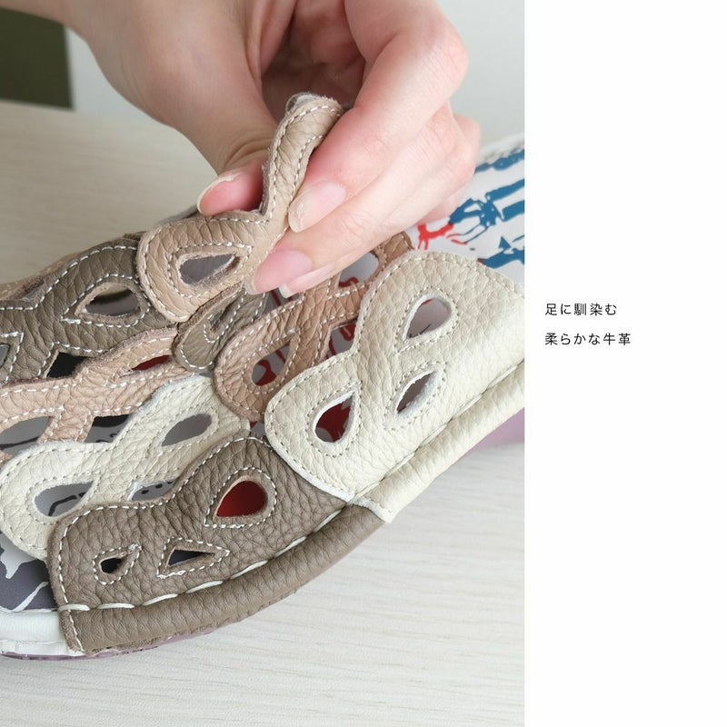 チラッと見える中敷きデザインにもこだわり、脱いでもお洒落なんです。